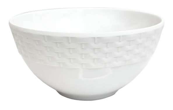 This stunning White Basketweave Melamine Cereal Bowl is designed for everyday use, with a rimless surface and a modern rustic aesthetic. The plate has a subtle woven-look basketweave design rim and a bright white exterior. It's not only beautiful, but it's also durable. Melamine is virtually unbreakable, so it'll work hard every day and be a favorite go to for years to come.