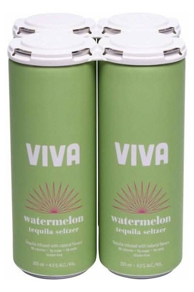 Viva Tequila Seltzer Watermelon offers a subtly sweet flavor, with a refreshing crispness and a lightly carbonated texture. As a premium tequila-based hard seltzer, it is sugar-free, carb-free, and contains 88 calories per can, with an alcohol by volume (ABV) of 4.5%. • Flavor: Watermelon • Pack size: 4 • Alcohol by volume: 4.5%