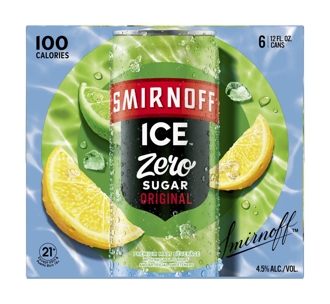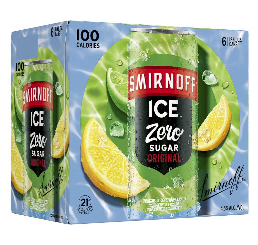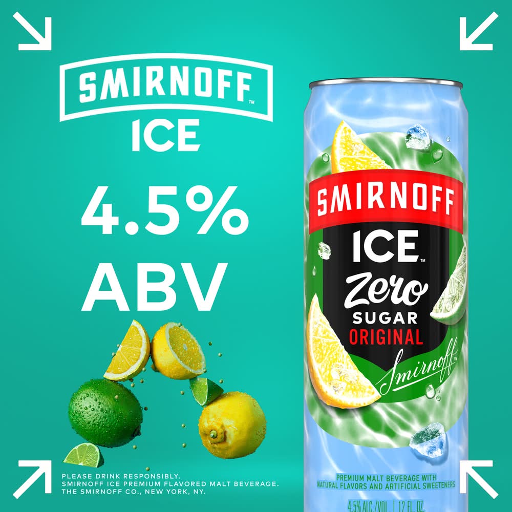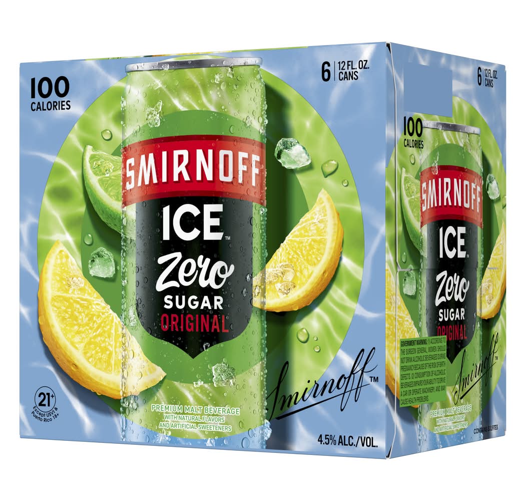 If you're looking for a crisp, delicious, and refreshing tasting drink but want to avoid sugar, you're in luck! Smirnoff Ice ZERO Sugar is a sugar-free beverage from the brand that started it all. With the crisp taste and bubbly finish of Smirnoff Ice Original, Smirnoff Ice ZERO Sugar is the ideal drink for chilling by the pool, sipping on game day or relaxing by the fire. Try Smirnoff Ice in Blue Raspberry, Party Pack Variety, Green Apple, Red White & Berry, Neon Ice Variety, Pink Lemonade, Raspberry, Zero Sugar Original, Black Cherry, Mango, Grape, and more • Brand: Smirnoff • Category: Malt liquor • Pack size: 6 • Alcohol by volume: 4.5% • Medium light bodied • Tasting notes: citrus, crisp • Suggested glassware: pint glass • Number of servings: 6