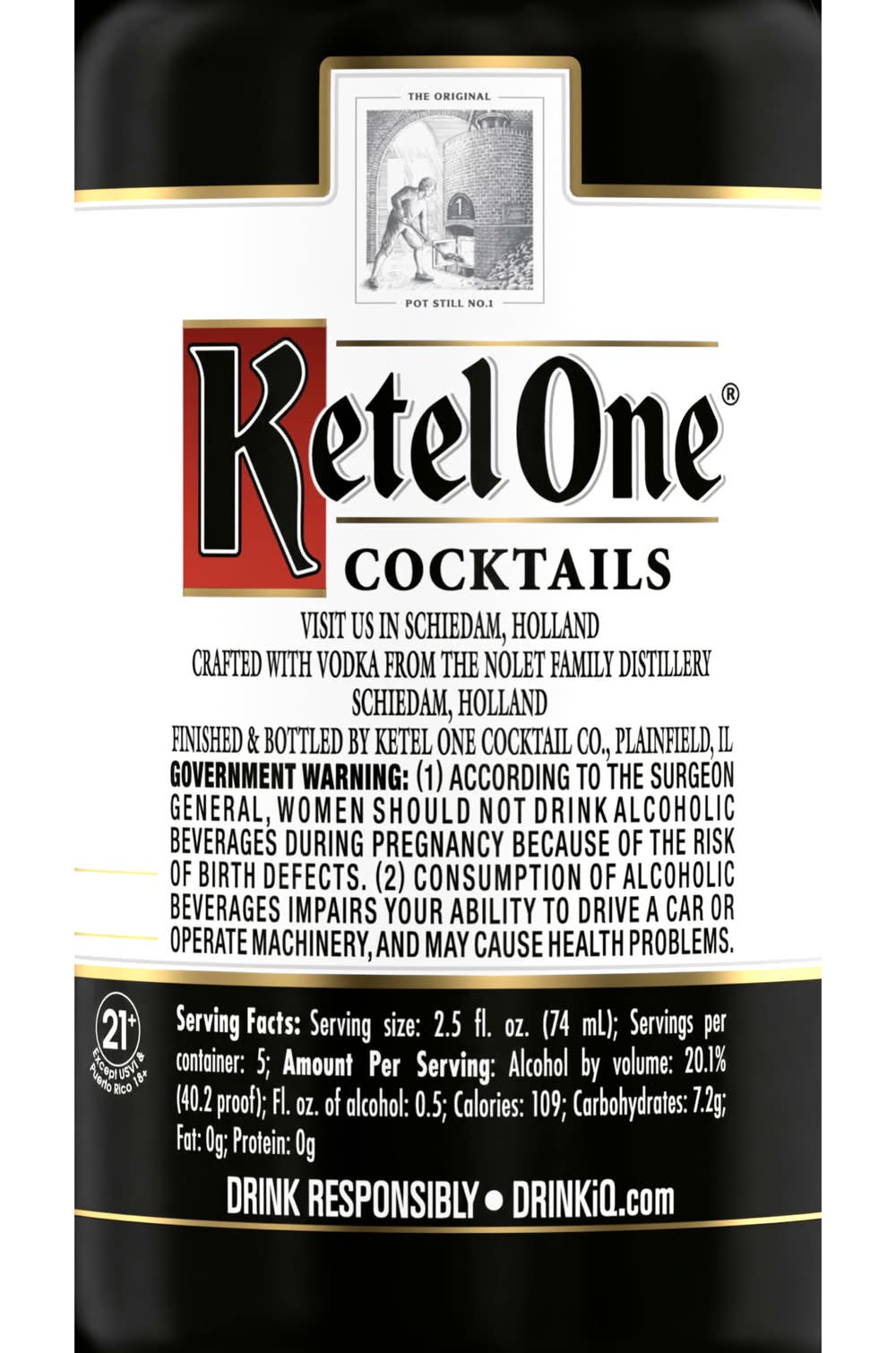 Indulge in the convenient luxury that Ketel One Espresso Martini Cocktail, part of the ready-to-serve Cocktail Collection and made with Ketel One Vodka, has to offer. Experience the taste inspired by traditional distilling expertise with Ketel One Family Made Vodka. Our vodka is carefully crafted using non-GMO European wheat for smoothness and neutrality. Distilled in copper pot stills, filtered over loose charcoal and stored in lined tanks, our vodka offers a crisp, unique flavor and strong finish. The Ketel One Espresso Martini Cocktail has an aroma of roasted espresso, dark chocolate, and fruit. On the palate is a sophisticated martini layered with espresso, dark chocolate, and orange with a smooth, lingering, chocolate finish. Simply serve straight from the bottle or add to a glass with ice for a convenient, ready-to-serve cocktail. Alcohol by volume: 20.1%