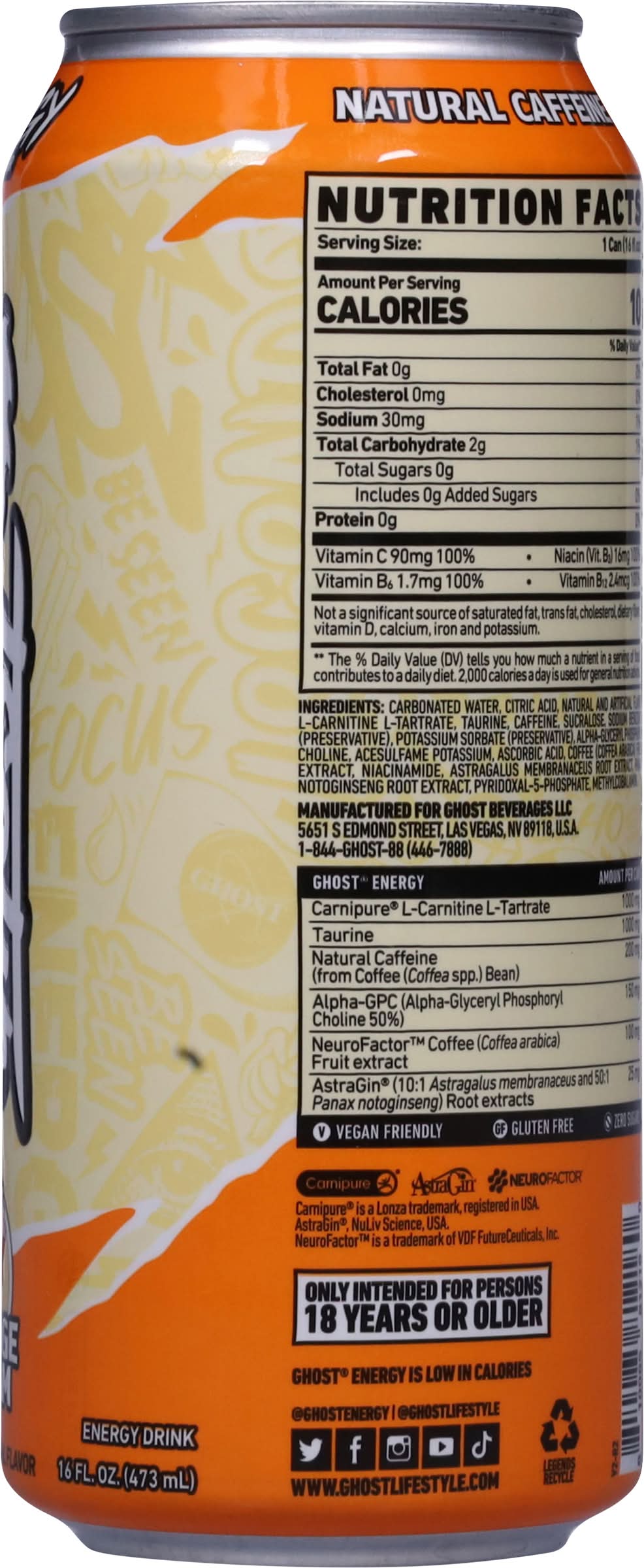 Ghost Zero Sugar Energy Drink, Orange Cream (16 fl oz)