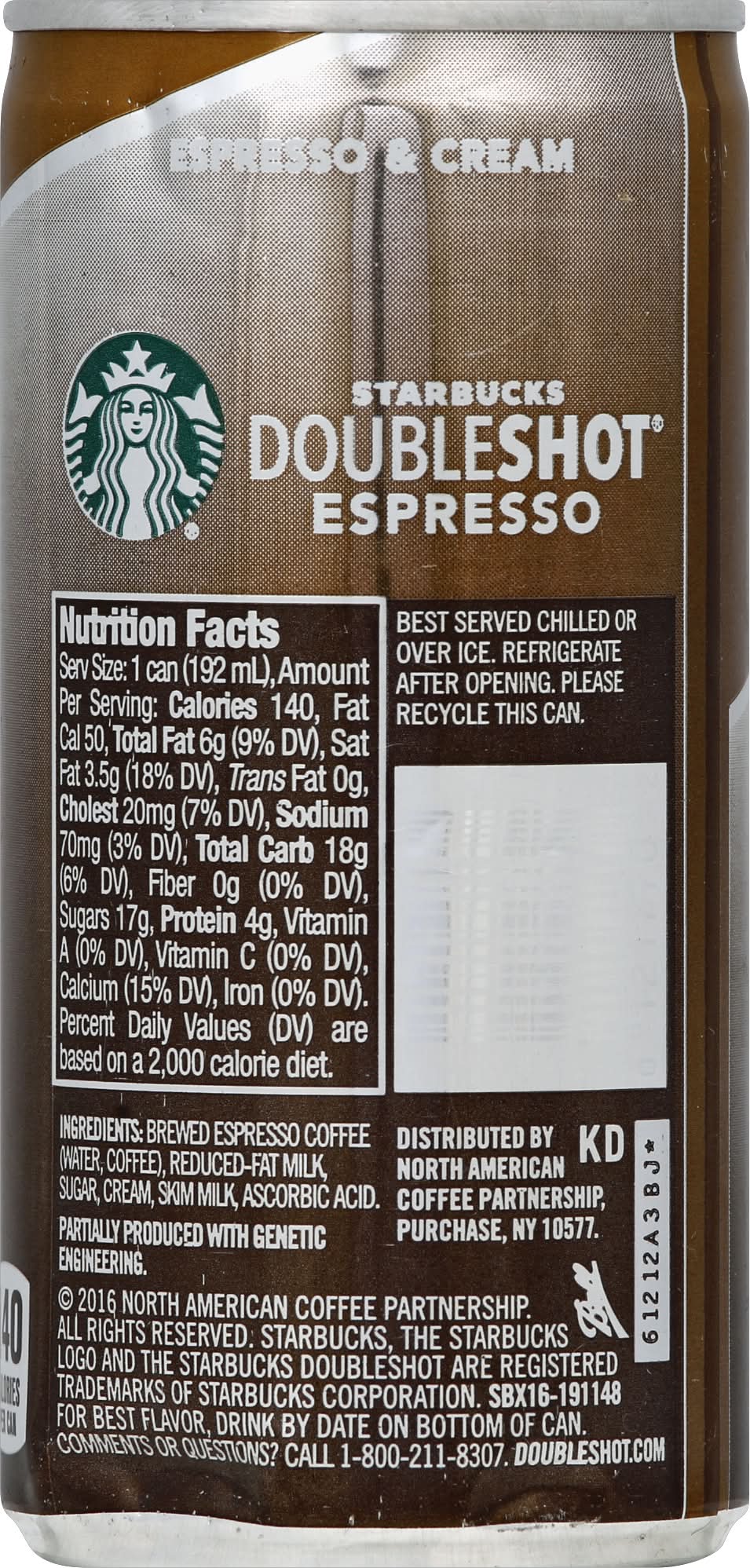 Starbucks Premium Doubleshot Liquid Coffee Beverage, Espresso & Cream (6.5 fl oz)