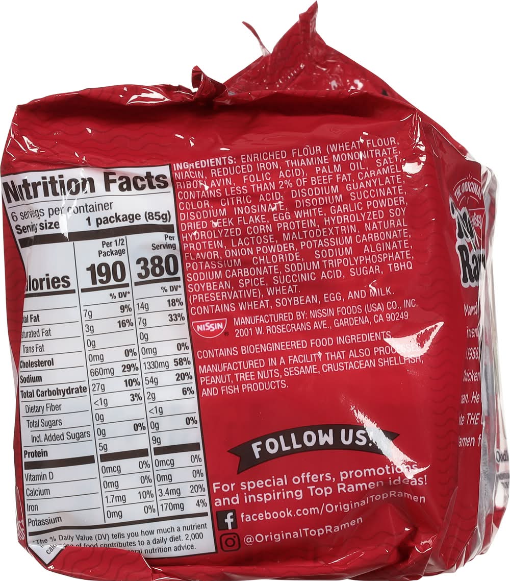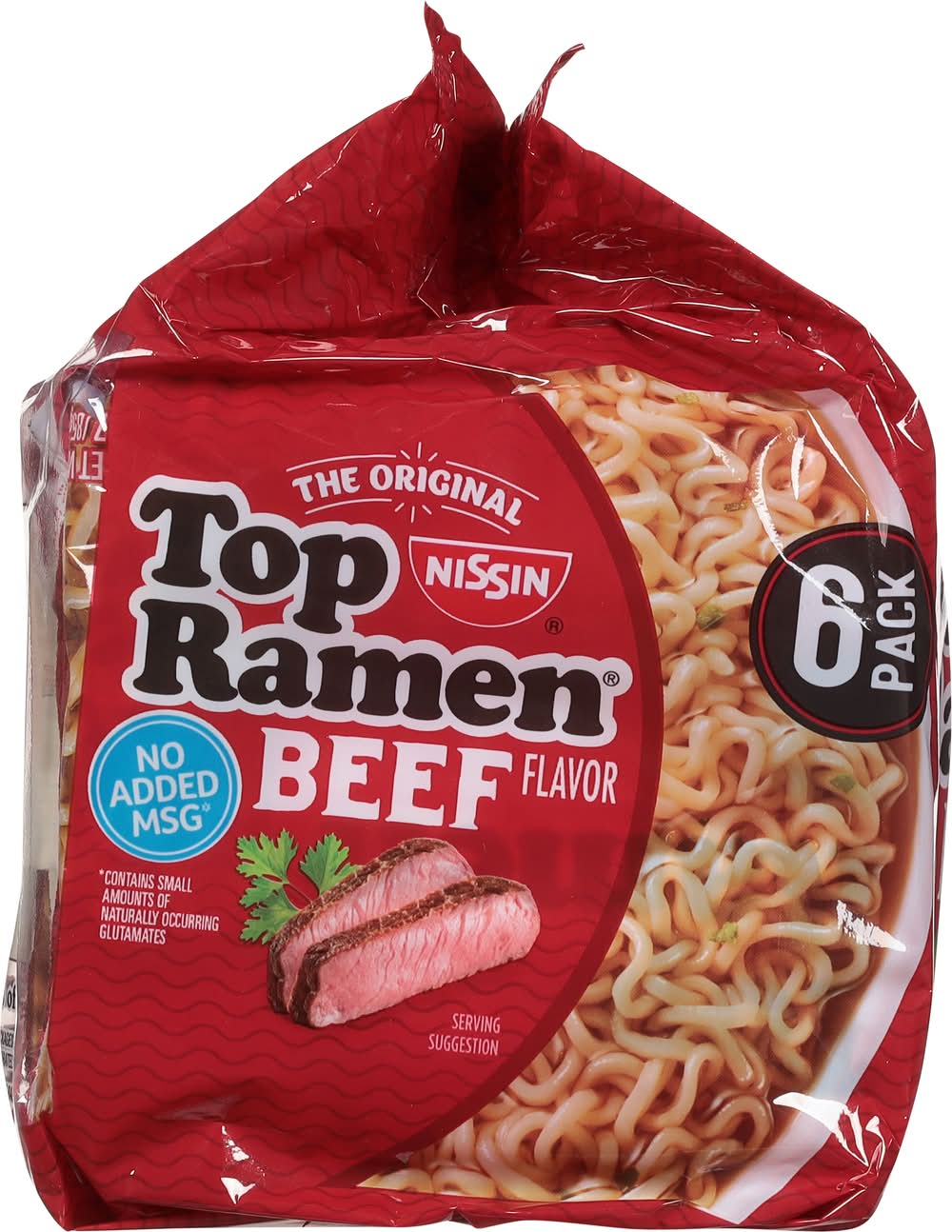 Nissin Top Ramen Noodle Soup, Beef (18 oz, 6 ct)