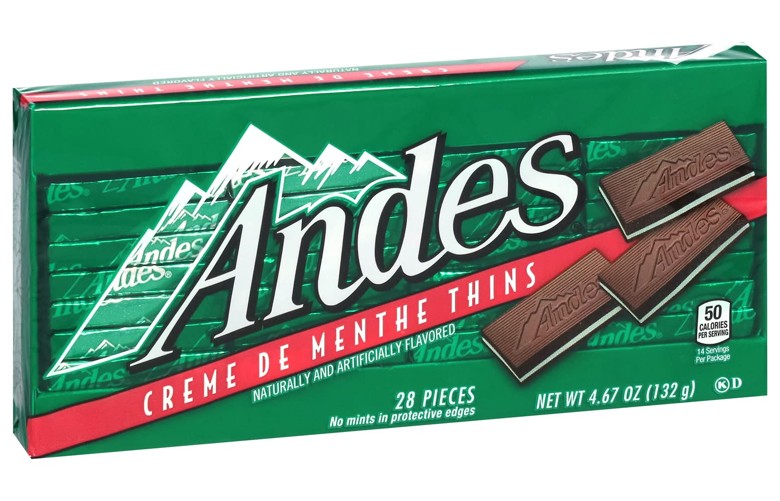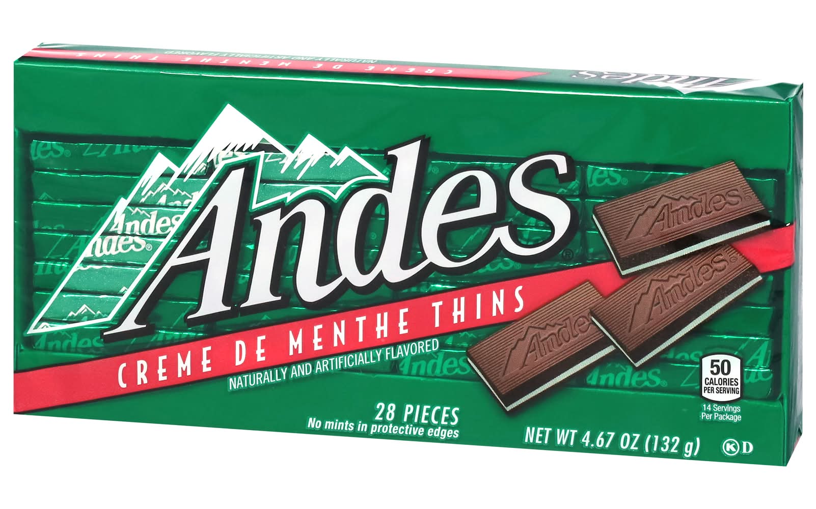 • Flavor: Creme de menthe thins • Andes Candies L.P., Delavan,WI,53115,USA
