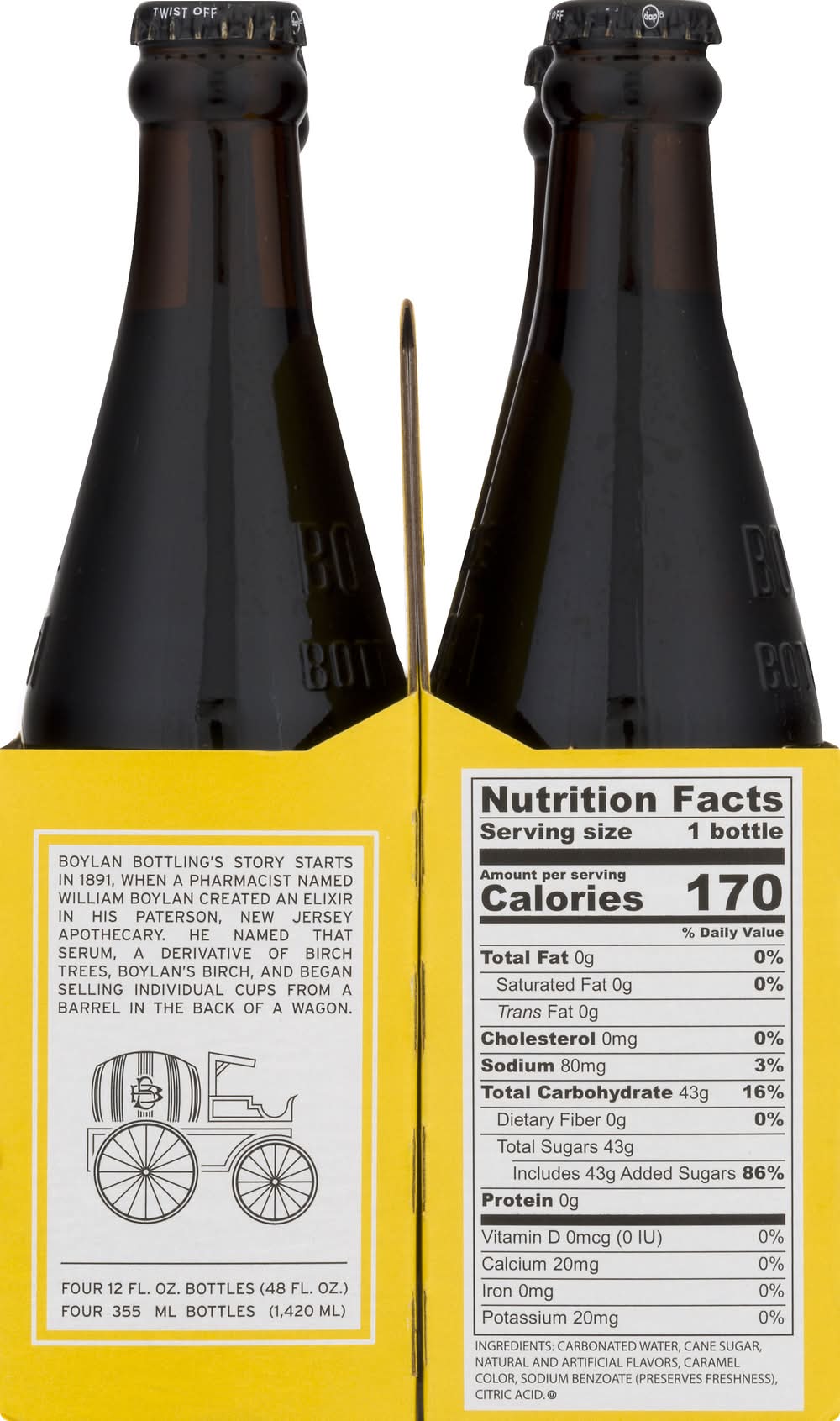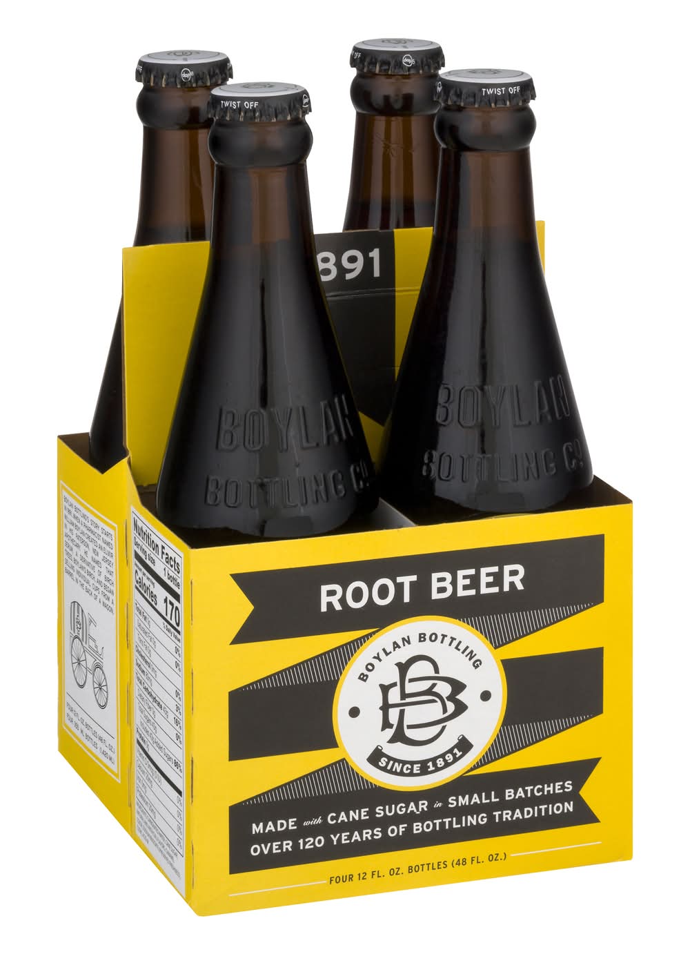 Root Beer • Pack size: 4 • Boylan Bottling Co., 6 E 43 Rd Street,New York,NY,10017 • Packaging: Reusable