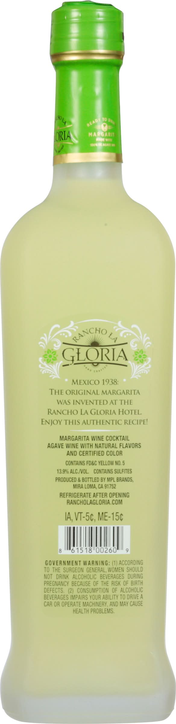 Enjoy this authentic recipe! Margarita wine agave wine with natural flavors and certified color. Hand crafted. Alcohol by volume: 13.9%