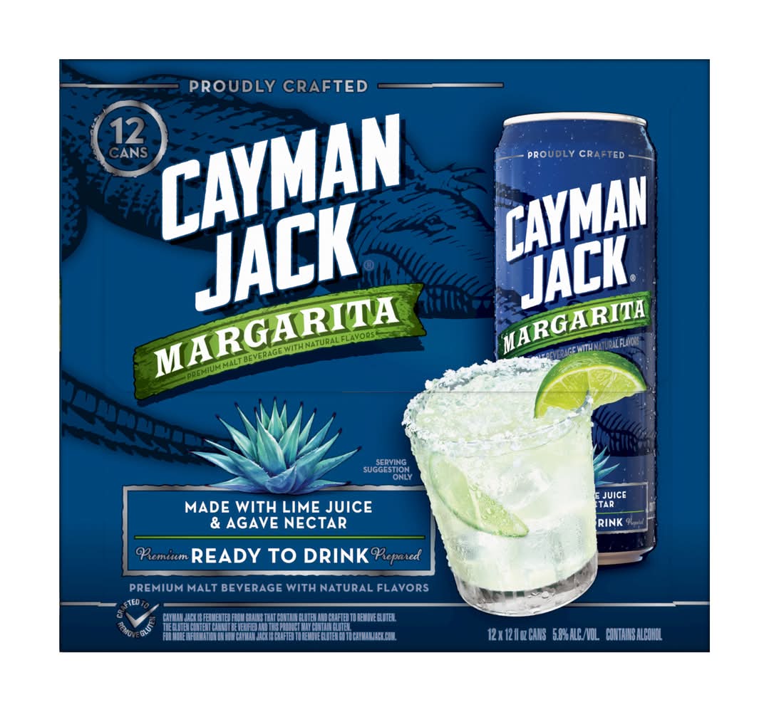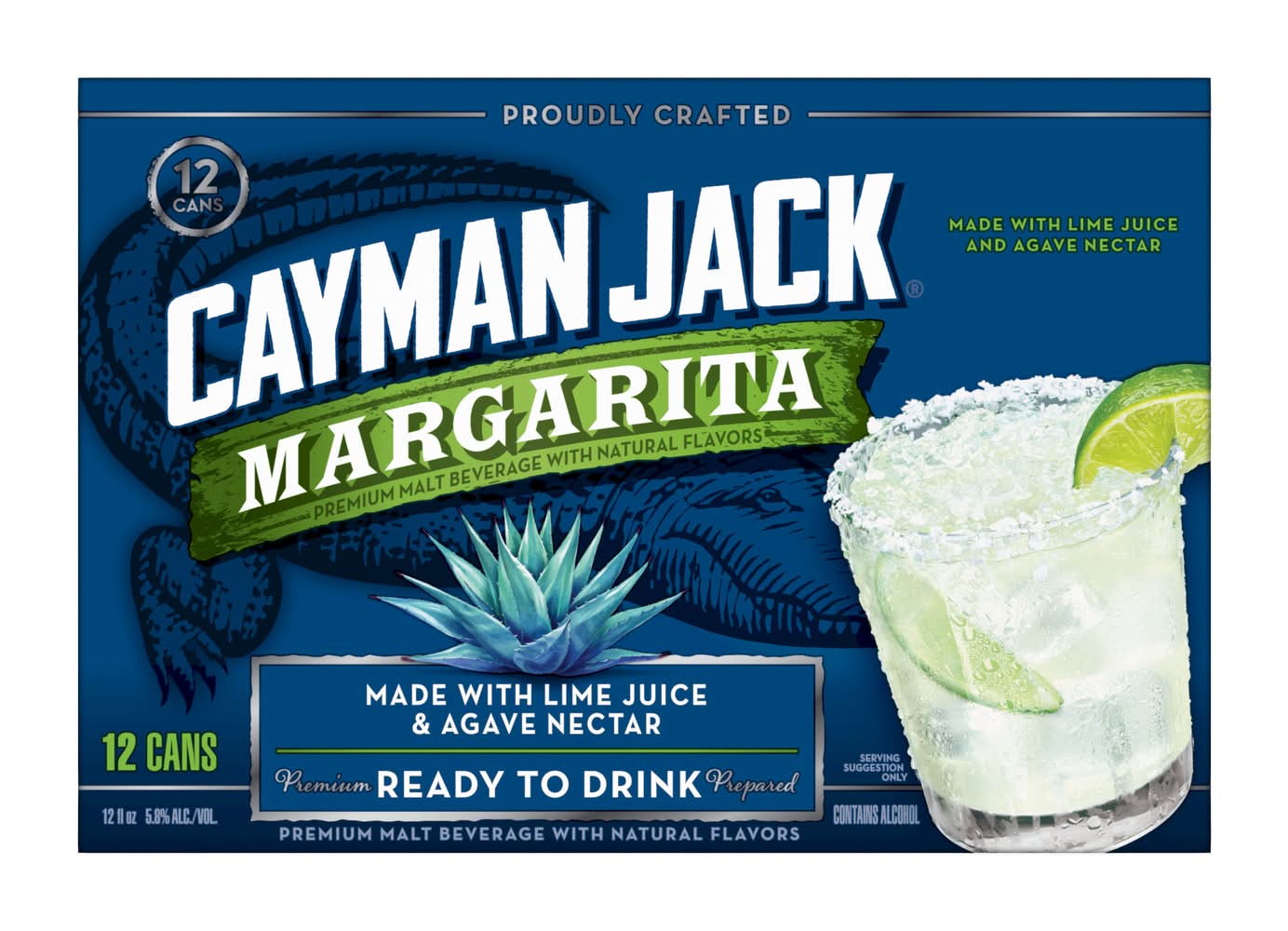 Cayman Jack Margarita is a refreshing, pre-made drink that delivers a unique, sophisticated and hand-crafted experience. Made with premium ingredients including 100% blue agave nectar and lime juice, Cayman Jack makes it easy to discover something unexpectedly great! Explore the ideal mingling of tart lime with notes of sweet agave nectar flavor. This well-balanced drink delivers that authentic margarita taste, at 5.8% ABV. This is the signature drink that started the flavor journey! Featuring a crisp and clean finish, this smooth and well-balanced drink tastes like it was hand-crafted right in front of you, making it the perfect pairing for every adventure. Great for sipping chilled or on the rocks – this premium drink delivers that exceptional margarita taste that you love. Cayman Jack is a Premium Malt Beverage with Natural Flavors. • Pack size: 12 • Alcohol by volume: 5.8% • Packaging: Reusable