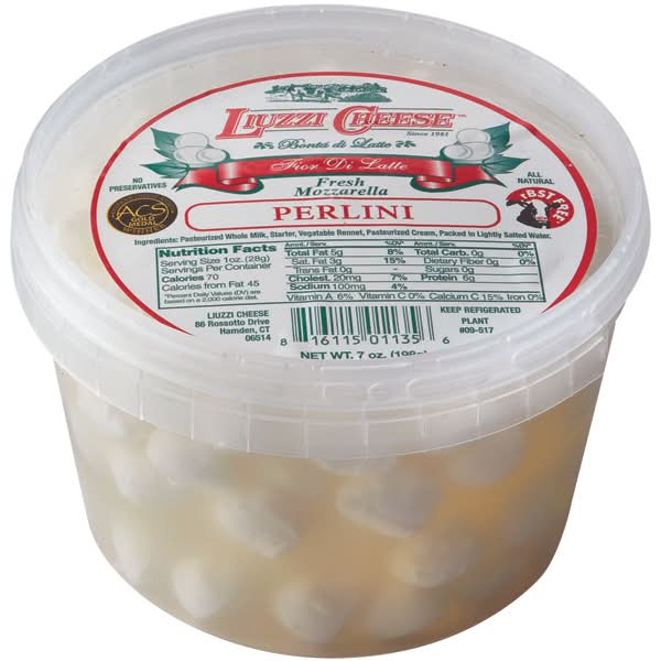 Fresh mozzarella perlini is a semi-soft pasta filata cheese with a soft smooth texture and fresh milky flavor.. Liuzzi Cheese, Hamden CT 06514