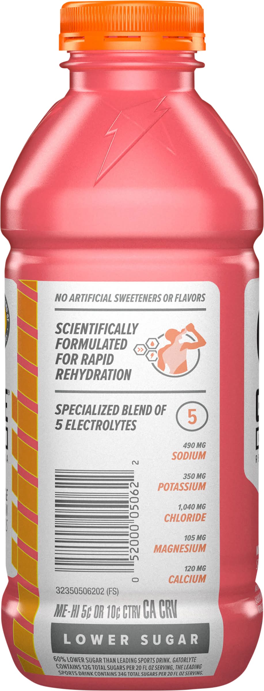 Naturally flavored with other natural flavors. Specialized blend of 5 electrolytes. Scientifically formulated for rapid rehydration. • Flavor: Watermelon • The Gatorade Co., P.O Box:049003,Chicago