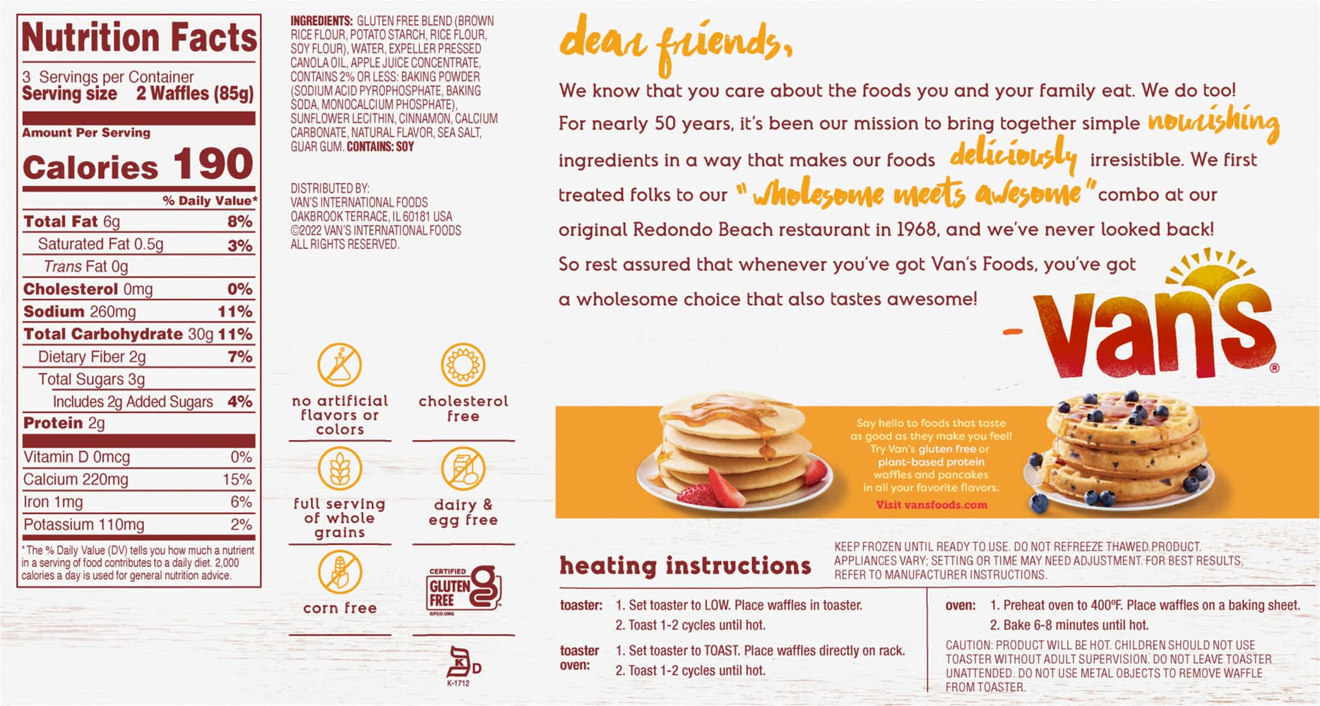 Waffles, Gluten Free, Apple Cinnamon Van's International Foods, San Diego, CA, 92154