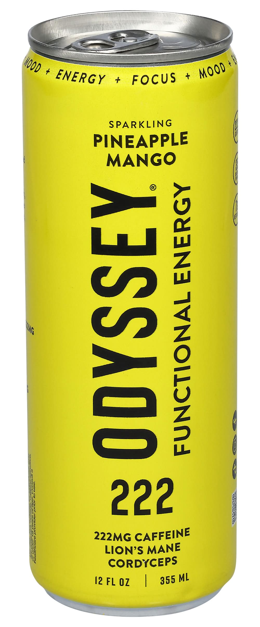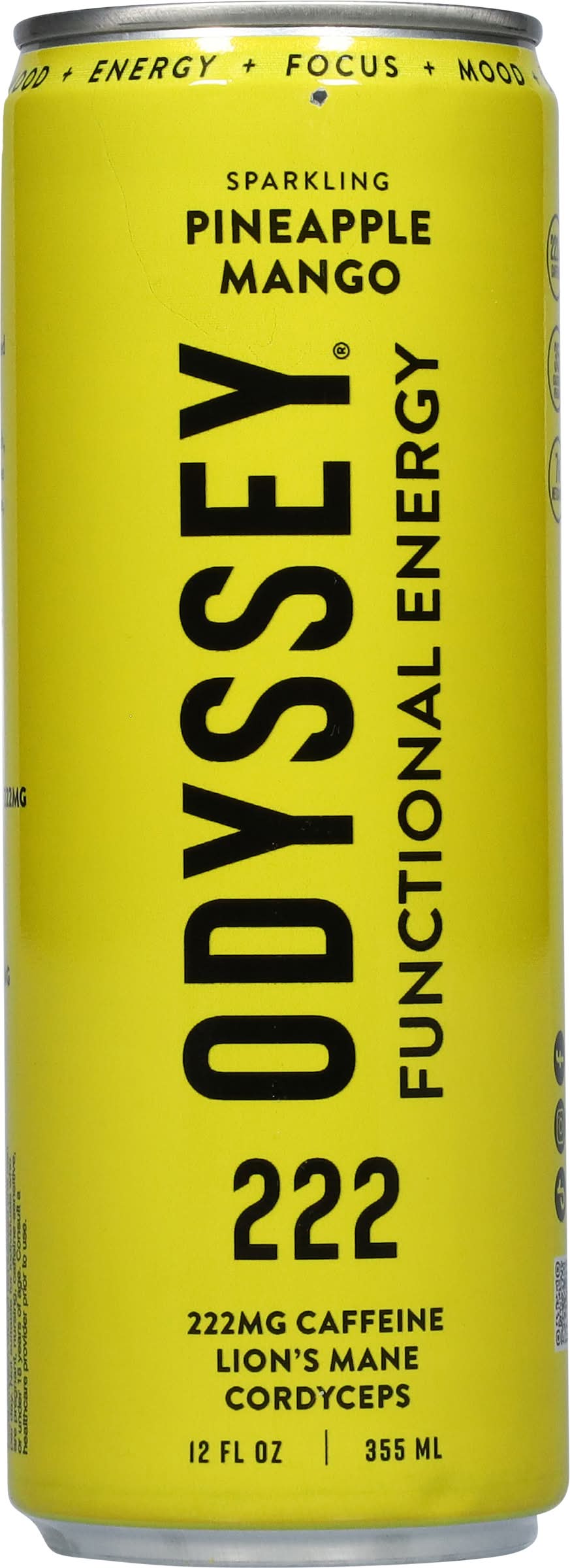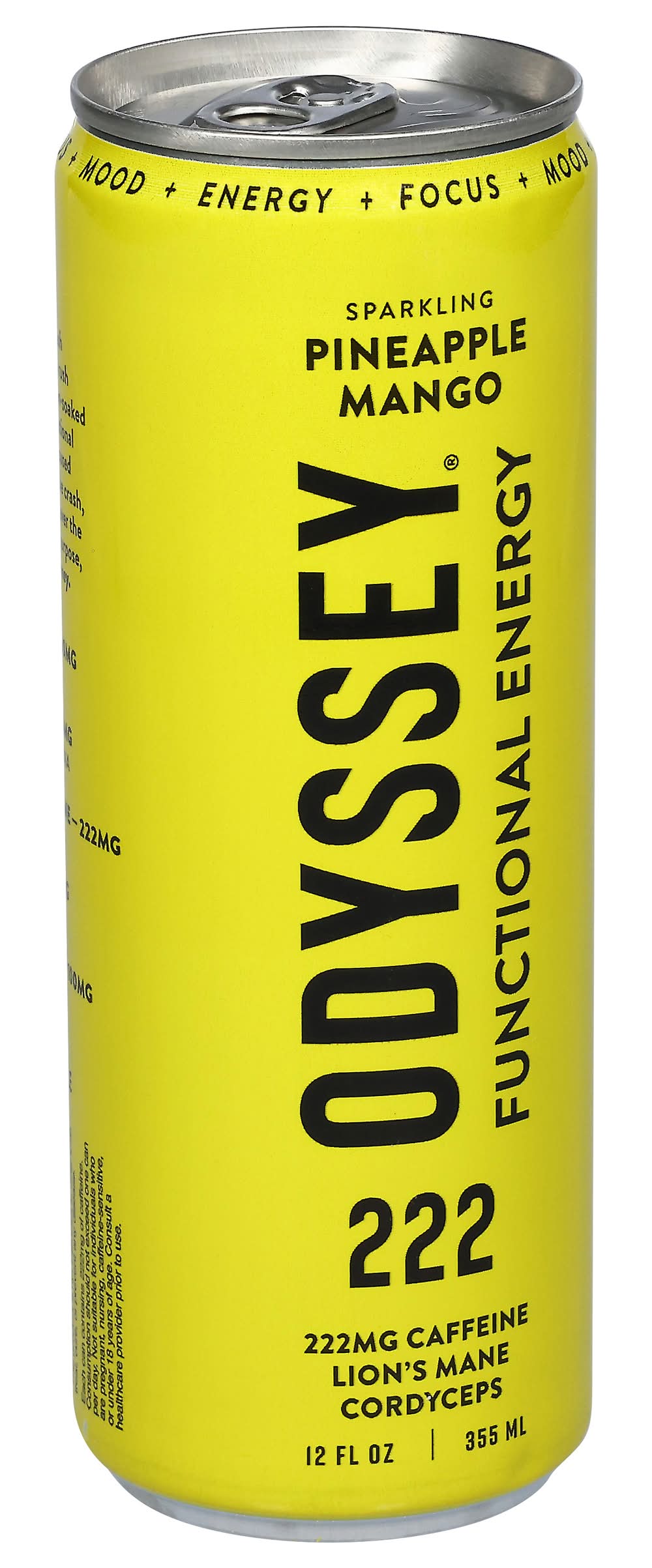 Ingredients: Filtered Carbonated Water, Organic Erythritol, Pineapple Juice Concentrate, Mango Juice Concentrate, Natural Flavors, Malic Acid, Citric Acid, Caffeine from Green Tea Extract, Organic Lion's Mane Mushroom Extract, Organic Cordyceps Mushroom Extract, Monk Fruit Extract, Panax Ginseng Root Extract, L-Theanine