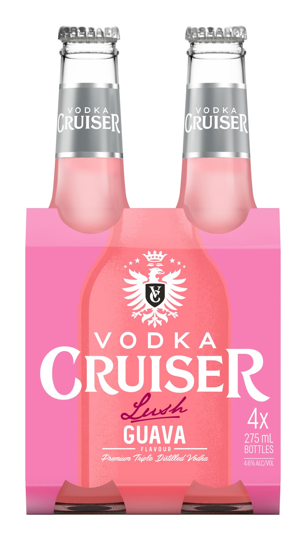 For 4 pack, 275mL each. A limit of 6 items per order applies to cases (ex wine) and bottles of spirits. • Brand: Vodka cruiser • Flavor: Guava • Pack size: 4 • Alcohol by volume: 4.59%