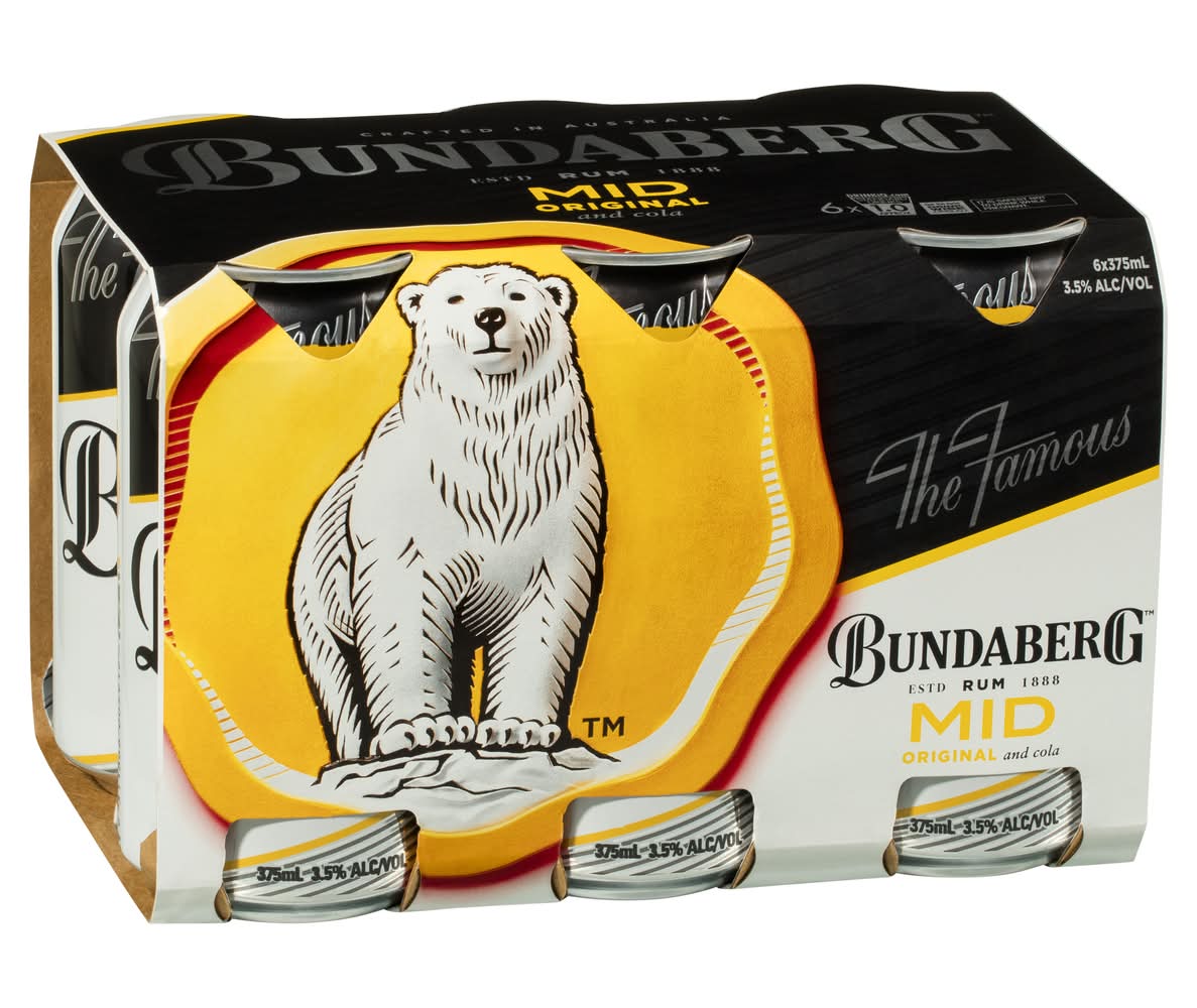 Bundaberg Mid Strength Original Rum & Cola, Caramel (6 x 375mL)