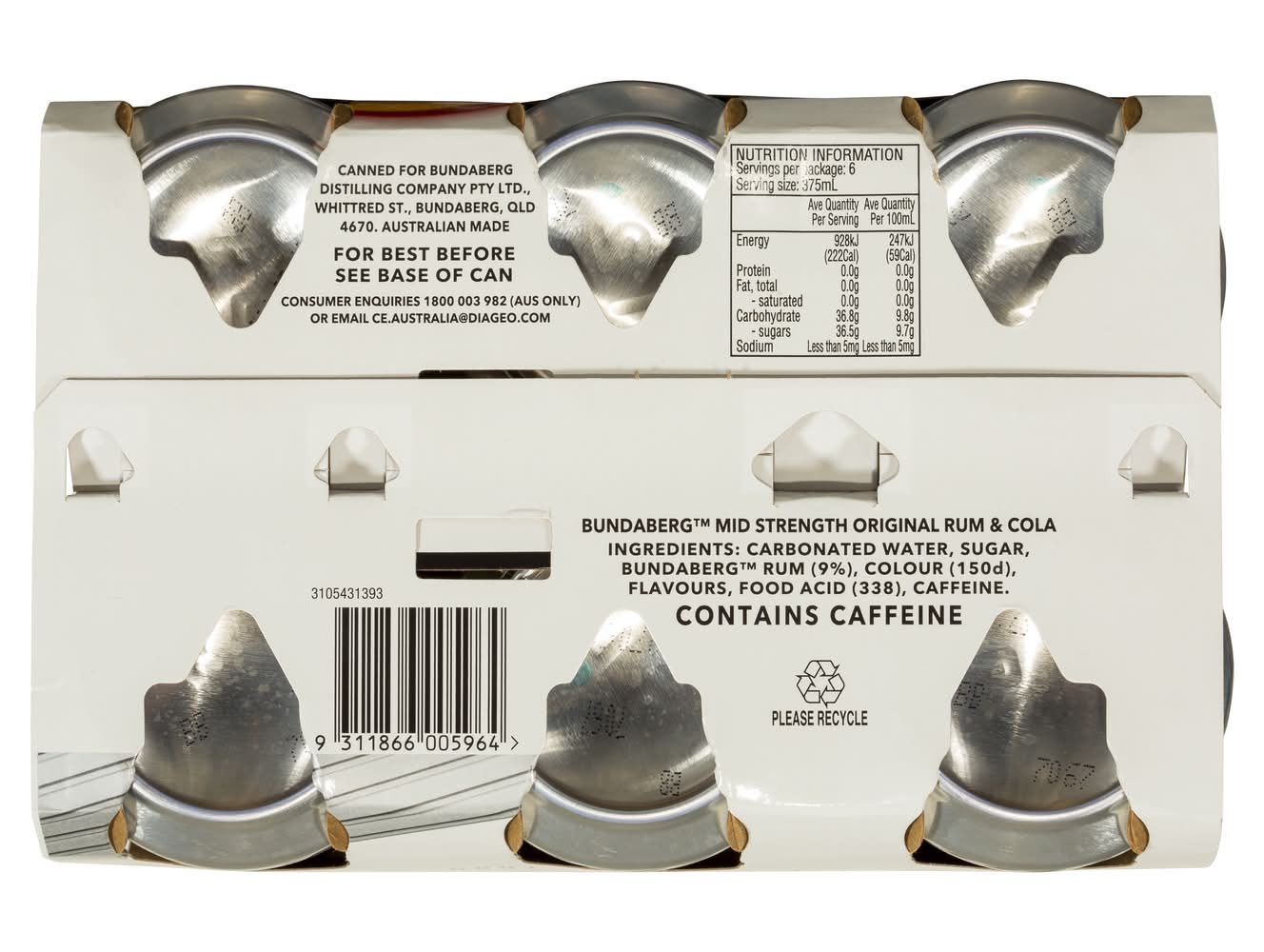 For 6 pack, 375mL each. A limit of 6 items per order applies to cases (ex wine) and bottles of spirits. • Brand: Bundaberg • Flavor: Caramel • Pack size: 6 • Alcohol by volume: 4.59%