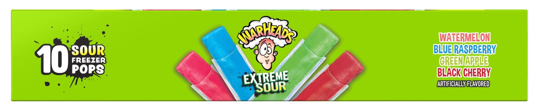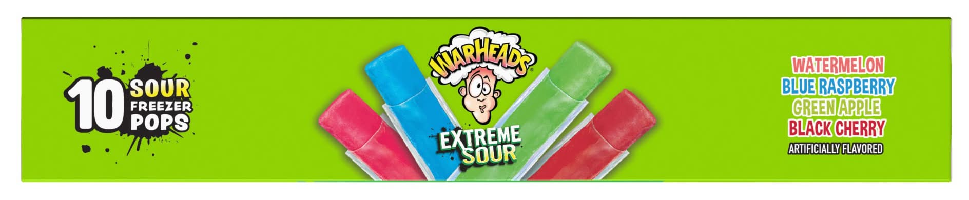 Warheads Freezer Pops, Watermelon-Blue Rasberry-Apple- Black Cherry (1 oz, 10 ct)