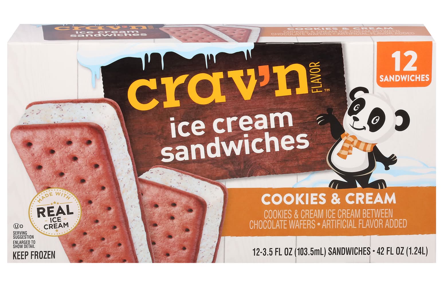 Crav'n Flavor Ice Cream Sandwiches, Cookies-Cream (3.5 fl oz, 12 ct)