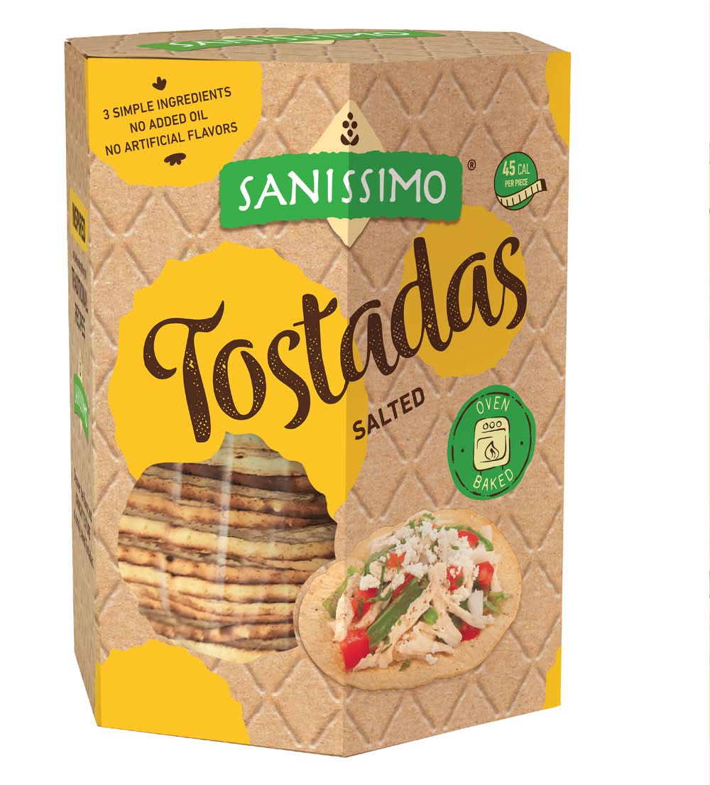 Finding the perfect type of tostada you need for an easy but great tasting snack can be a difficult task—that’s why we created our Sanissimo Oven Baked Corn Tostadas. Crafted with wholesome goodness, our tostadas are packed with the delicious and rich flavors of corn. We preserve the original flavor by utilizing our exclusive slow baking process. And expertly made from our recipe of three simple ingredients, we ensure you are treated to a quality snack that satisfies your hunger. The Sanissimo Tostadas are made with whole grain corn flour to provide a tasty flavor while the remaining ingredients provide the light and always crispy texture. Create the ultimate party snack when you pair our Sanissimo Tostadas with Octopus Ceviche made from ripe tomatoes, fresh lemon and lime juice, red onion, and finely chopped cilantro. Or spread a layer of goat cheese on a tostada and top with thinly sliced smoked salmon and purple onion for a delicious bite. Top our corn tostadas with fresh-cut tomatoes, cheese, and mayo or with cream cheese and bacon for a savory snack. While these are our suggested uses, feel free to try your own favorite recipes! Keep your taste buds happy and enjoy the unmistakable, savory crunch of a Sanissimo Tostada for your next bite. *This product has been certified as gluten free by The Gluten-Free Certification Organization (GFCO). **Non-GMO Project Verified. Flavor: Salt flavored