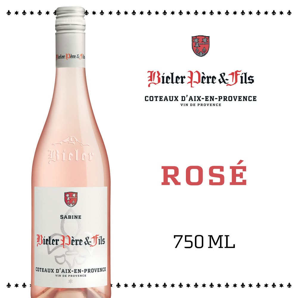 Bieler Père & Fils Sabine Rose Wine is a classic Provence Rose wine with a delicate balance of flavors. Summery flowers, white tea and Provence herbs balance enticing aromatics of peach, white cherry and wild raspberry. This blush wine finds a delicate balance of floral, herbal, wild red fruit and stone fruit flavors and has a creamy, yet lifted palate interwoven with rose petals and wet stones. The wine is in no way heavy on the palate, but rather the palate has tremendous length. The goal wasn't a Rose wine with singular big flavors, the goal was a wine with more nuance, energy, soul and personality. Awards for this pink wine include 90 points from James Suckling in 2023; try the latest release. Pair this dry blush wine with pizza topped with prosciutto and balsamic. The grapes are grown in the hills surrounding Aix-en-Provence in order to focus on the cooler, more rugged and higher elevation in those vineyards. The result is gentler ripening and more natural acidity, two critical attributes to make the best kind of Rose. This French wine is a blend of 41% Grenache, 27% Syrah, 15% Cabernet Sauvignon, 12% Cinsault and 5% Rolle. Instead of using a single approach to each fermentation, the winemakers break up each vineyard into parts, using different yeasts, juice solids and lees treatments so each tank is a little different and brings a unique perspective in the final blend. This bottled wine has 12.5% alcohol by volume and comes in a screw cap bottle for easy opening without a corkscrew. The Bieler family has been producing Rose from Provence since the 1990’s. Charles Bieler continues the family's tradition in the South of France. • Brand: Bieler père et fils • Category: Rosé wine • Alcohol by volume: 13% • Bieler Pere Et Fils, St Helena,CA