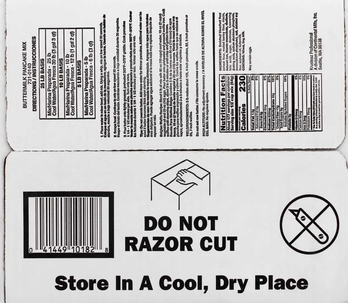Pancake Mix, Buttermilk • Size: 25 LB • Number of servings: 177