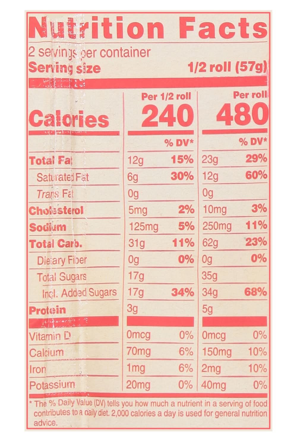 Ingredients: Enriched Wheat Flour (Wheat Flour, Malted Barley Flour, Niacin, Iron, Thiamine Mononitrate, Riboflavin, Folic Acid), Sugar, Fractionated Palm Oil, Water, Eggs, Contains 2% or Less of Yeast, Corn Syrup, Mono- and Diglycerides, Cinnamon, Hydrogenated Palm Kernel Oil, Soy Lecithin, Salt, Calcium Carbonate, Agar, Sorbitan Monostearate, Polysorbate 60, Soy Flour, Nonfat Dry Milk, Soybean Oil, Natural Flavors, Corn Starch, Modified Corn Starch, Calcium Propionate (Preservative), Xanthan Gum, Leavening (Sodium Acid Pyrophosphate, Baking Soda), Calcium Sulfate, Enzymes, Cocoa (Processed with Alkali), Colors (Beta Carotene, Titanium Dioxide). Contains: Eggs, Corn, Soybeans, Milk, Wheat, Barley, Tree Nuts, Tree Nuts, Almonds, Tree Nuts, Pecans, Tree Nuts, Walnuts/Butternuts