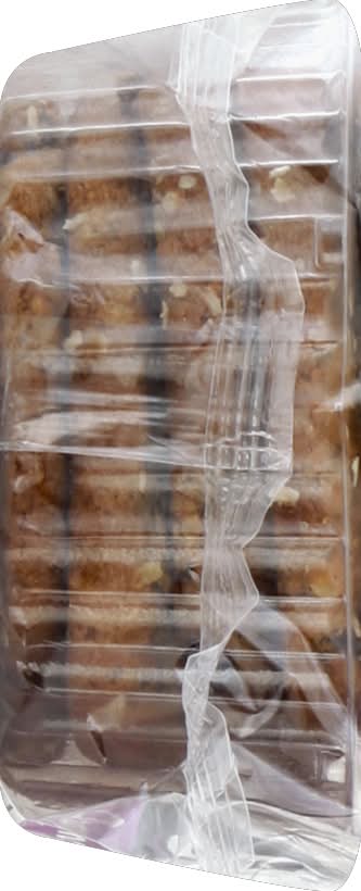 Ingredients: Enriched Bleached Wheat Flour (Wheat Flour, Niacin, Reduced Iron, Thiamin Mononitrate, Riboflavin, Folic Acid), Raisins, Sugar, Palm Oil, Water, Oatmeal, High Fructose Corn Syrup, Corn Syrup, Brown Sugar, Molasses, Buttermilk, Eggs, Baking Soda, Salt, Cinnamon, Artificial Flavor Contains: Milk, Eggs, Wheat, Peanuts, Tree Nuts