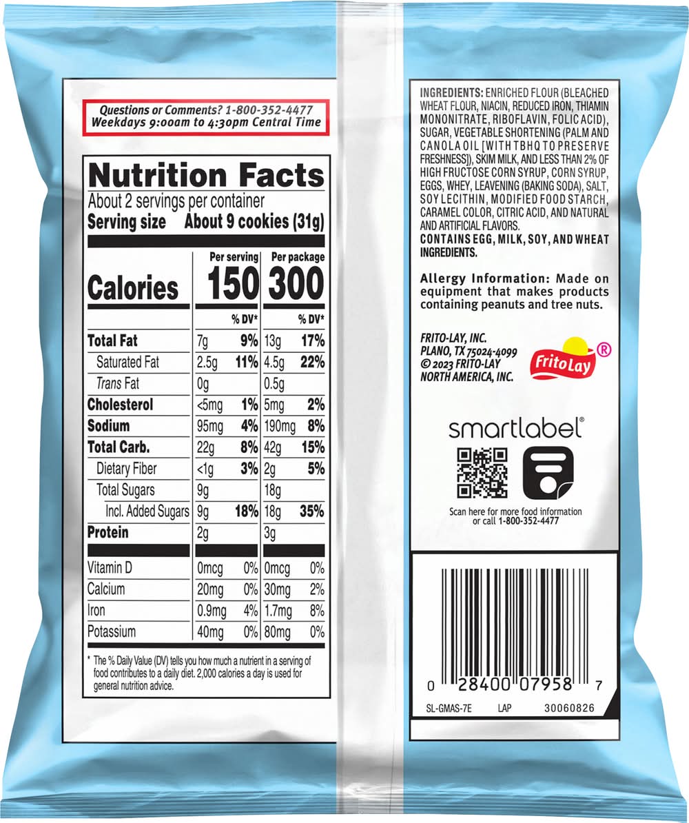 Ingredients: Enriched Flour (Bleached Wheat Flour, Niacin, Reduced Iron, Thiamin Mononitrate, Riboflavin, Folic Acid), Sugar, Vegetable Shortening (Palm and Canola Oil [with TBHQ to Preserve Freshness]), Skim Milk, and Less than 2% of High Fructose Corn Syrup, Corn Syrup, Eggs, Whey, Leavening (Baking Soda), Salt, Soy Lecithin, Modified Food Starch, Caramel Color, Citric Acid, and Natural and Artificial Flavors Contains: Wheat, Milk, Eggs, Soybeans, Peanuts, Tree Nuts