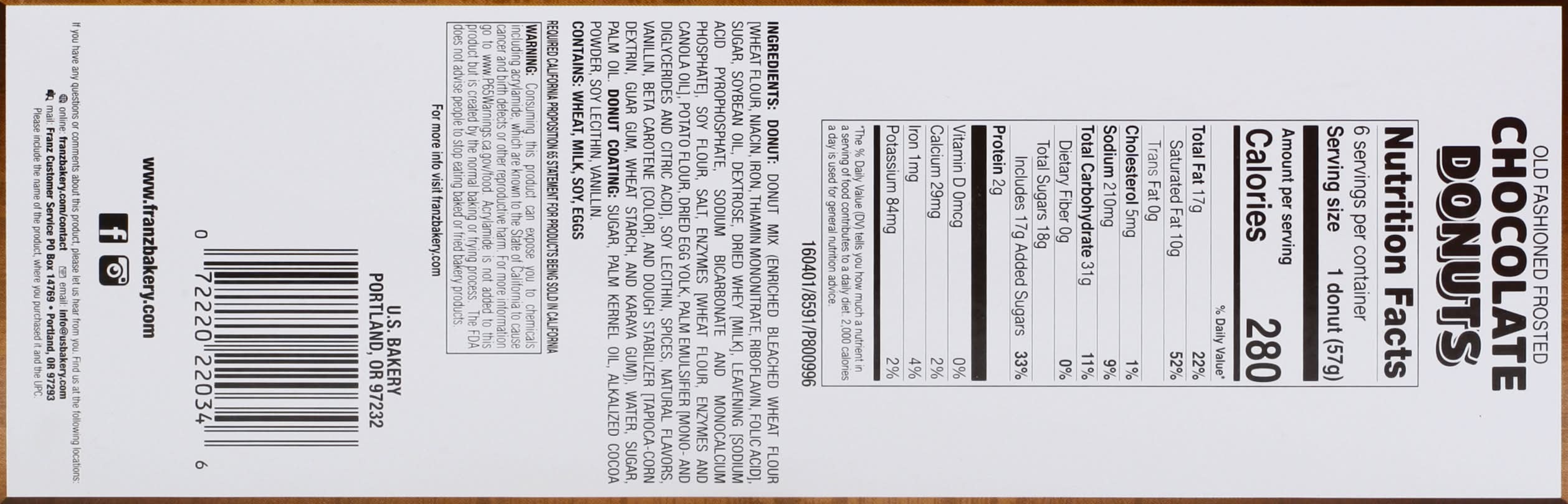 Donuts, Chocolate Frosted, Old Fashioned • Size: 6 EA • US Bakery, Portland-OR-97293