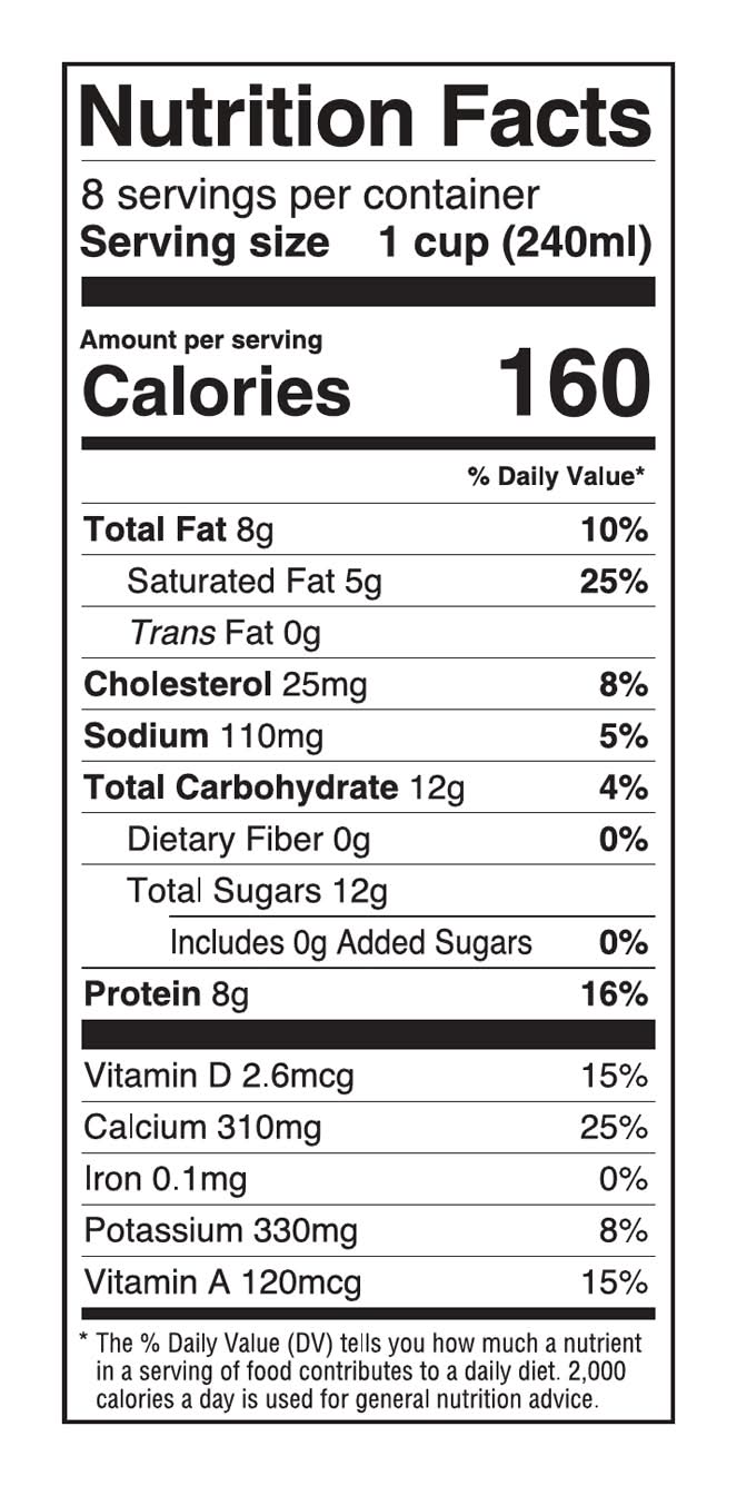Ingredients: Milk, Nonfat Milk, Vitamin D3 Contains: Milk