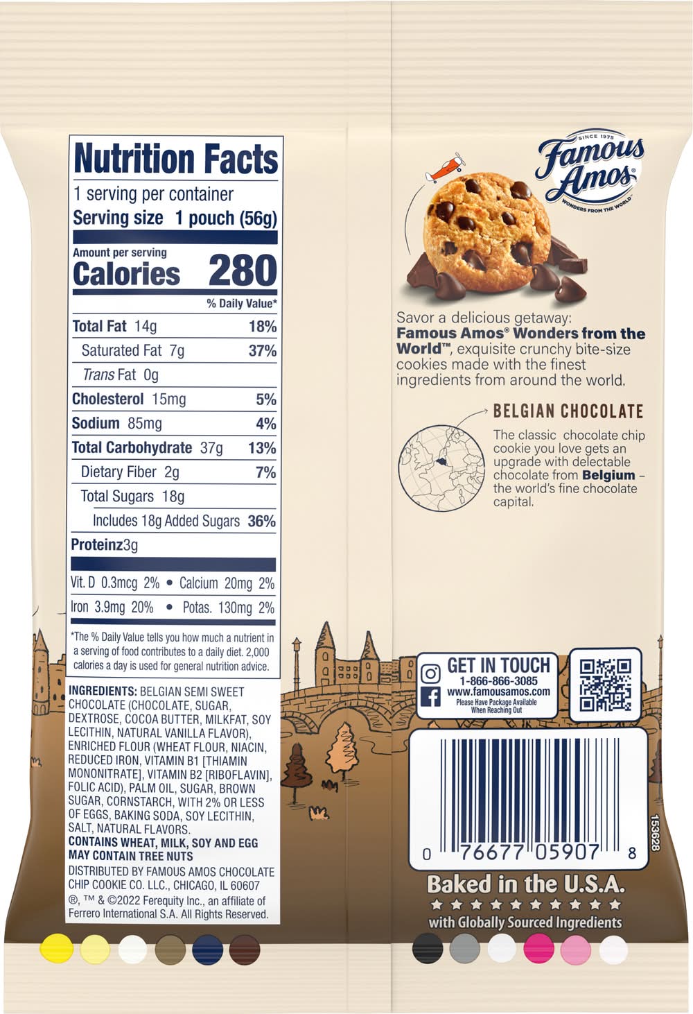 Cookies, Belgian Chocolate, Bite Size • Brand: Famous amos • Flavor: Chocolate chip • kosher • Number of servings: 1