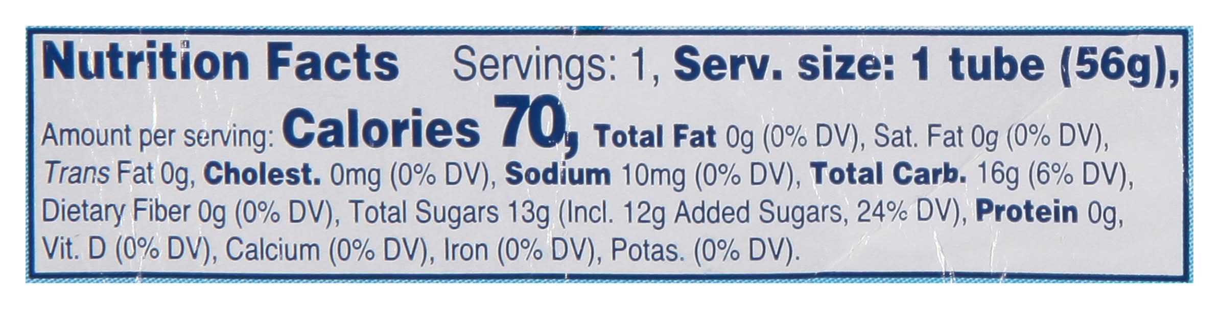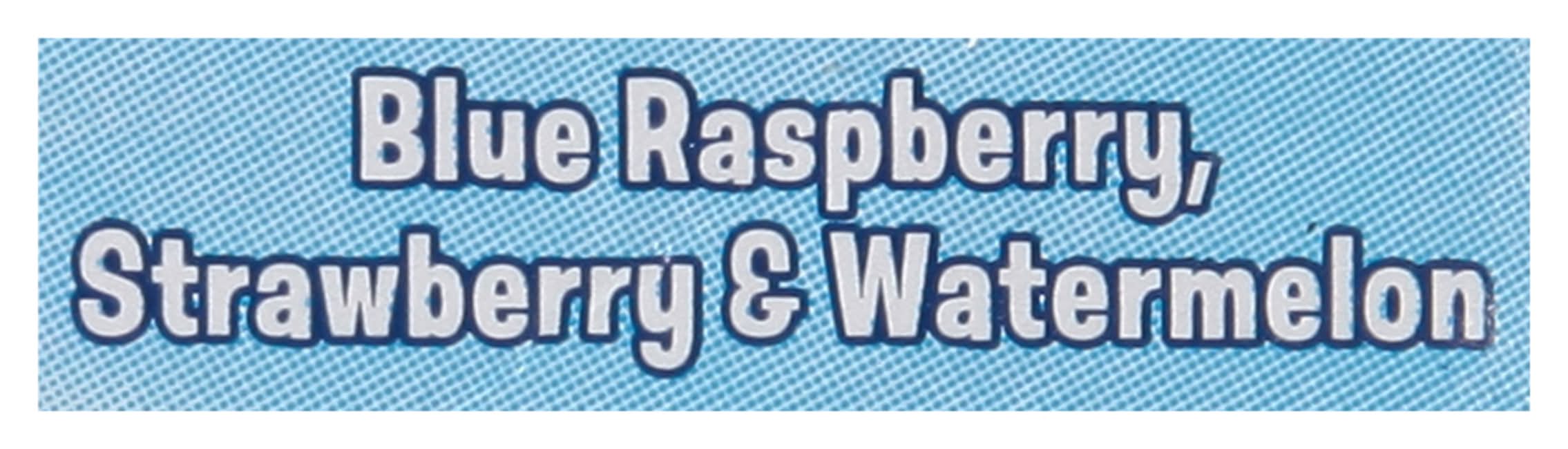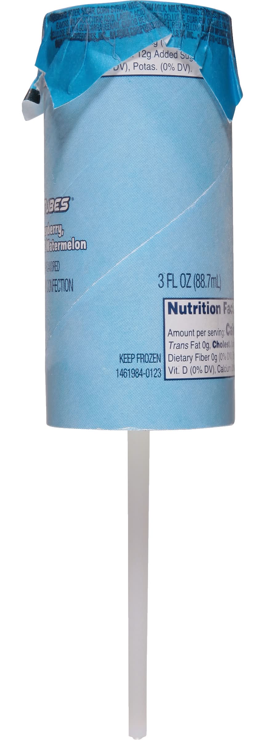 Ingredients: Water, Sugar, Corn Syrup, Whey, Skim Milk, Milk, Contains 2% or Less of Artificial Natural Flavors, Malic Acid, Citric Acid, Lactic Acid, Modified Cellulose, Guar Gum, Cellulose Gum, Xanthan Gum, Cellulose Gel, Tara Gum, Carrageenan, Carob Bean Gum, Blue 1, Red 40, Yellow 5. Contains: Contains Milk.