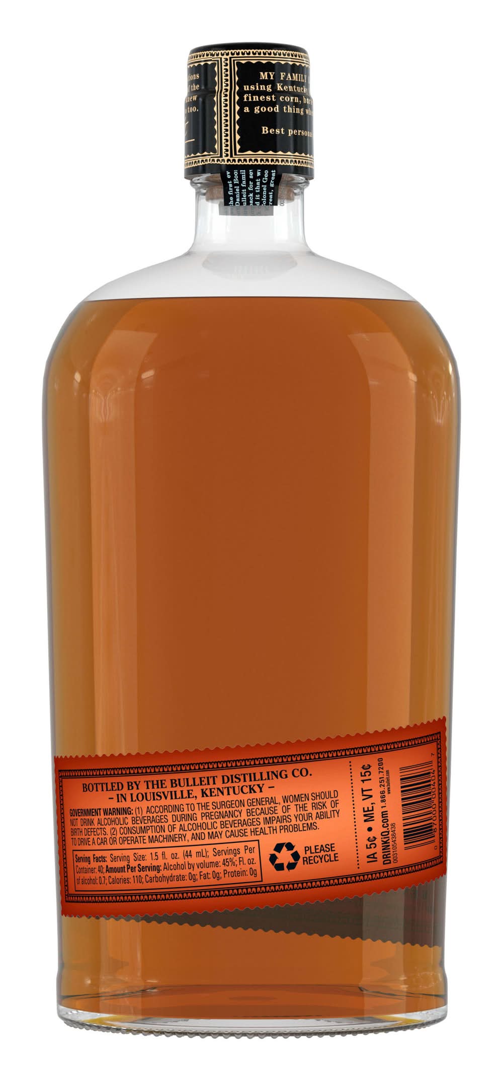 It is inspired by the whiskey that was pioneered over 150 years ago. Only ingredients of the very highest quality are used. The complexity of Bourbon comes from its unique blend of rye, corn, and barley malt, along with special strains of yeast and pure Kentucky limestone filtered water. Due to its especially high rye content, Bourbon has a bold, spicy character with a finish that's distinctively clean and smooth. Medium amber in color, with gentle spiciness and sweet oak aromas, the mid palate is smooth with tones of maple, oak, and nutmeg. The finish is long, dry, and satiny with a light-tasting toffee flavor that lingers long after the final sip. • Alcohol by volume: 45% • Packaging: Reusable