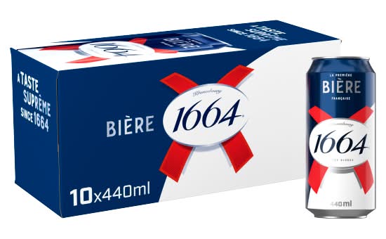 1664 Bière is a premium crisp, golden and perfectly balanced lager beer. Brewed with hops from the Alsace region of France, famed for its rich gastronomy and brewing heritage. A taste supreme since 1664. A beautifully balanced and sessionable lager beer made with signature hops from the French region of Alsace. The flavourful 1664 Bière taste profile with its subtle bitter twist is designed for easy drinking refreshment and perfect for bringing people together, crafted with a touch of je-ne-sais quoi. Our 350 years of uncompromising conviction in who we are and what we do enables us to consistently produce quality lager and ensure our drinkers experience the undeniable French commitment to pleasure. Tasting Notes-Crisp and full bodied with a moderate malt palate balanced against a floral hop flavour. Perfect Occasion 1664 Bière is a crisp, balanced and refreshing premium lager beer, perfect for get-togethers with family and friends such as BBQs, summer gatherings, sporting events, national holidays, as well as Easter, Summer and Christmas celebrations. • Pack size: 10 • Alcohol by volume: 4.6% • Carlsberg Marston's Brewing Co. Ltd,, Wolverhampton, WV1 4JT