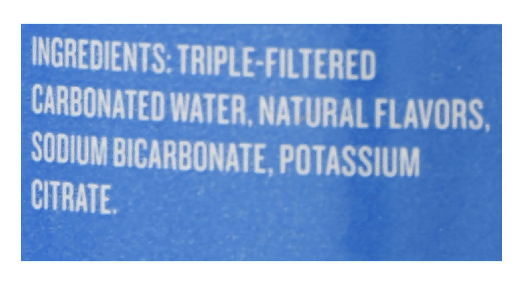 Ingredients: Triple-Filtered Carbonated Water, Natural Flavors, Sodium Bicarbonate, Potassium Citrate