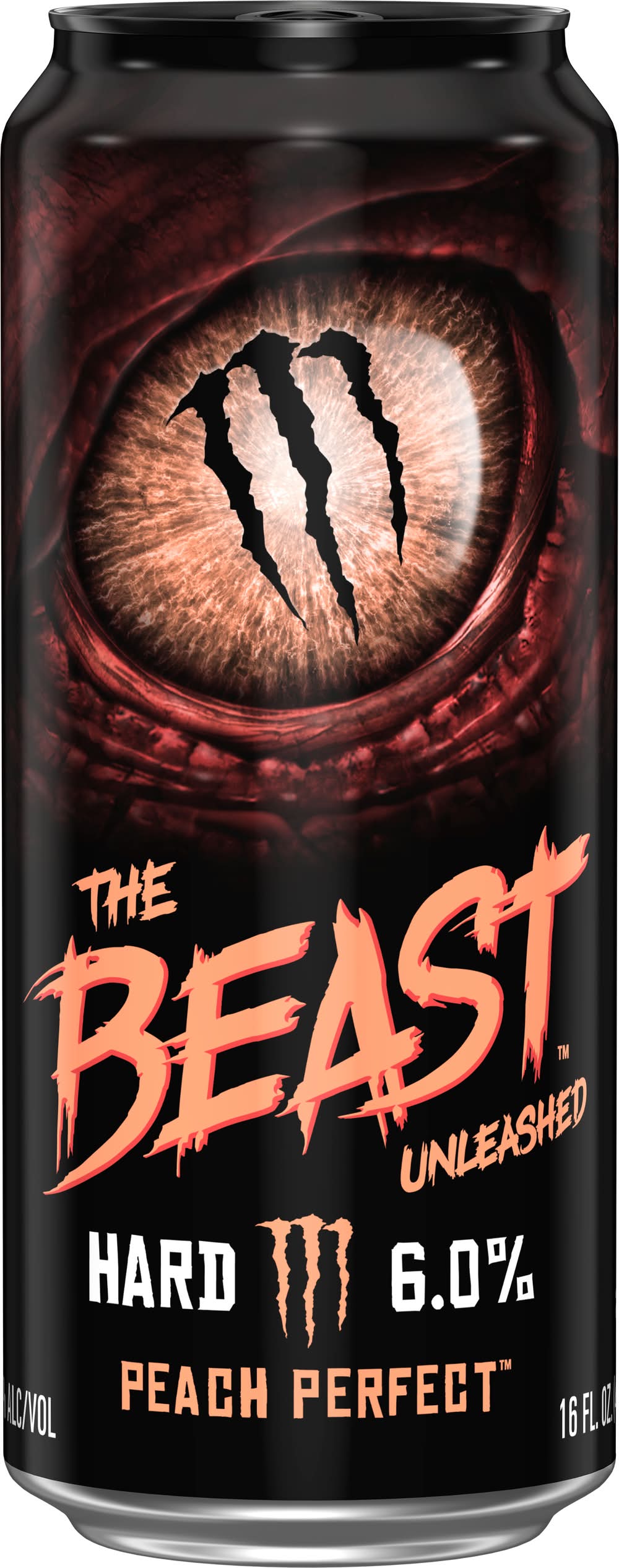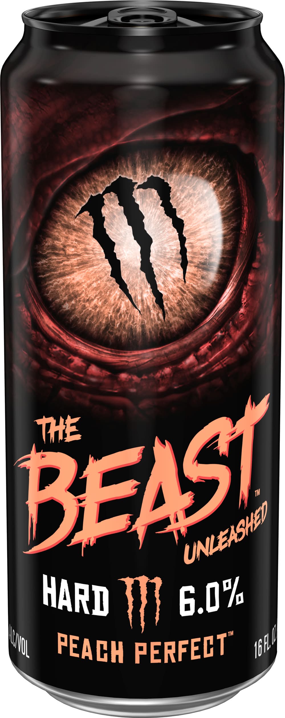 Our original crew has been making drinks for 30+ years now. Our favorite brand Monster Energy is about to turn 21. We figured why not celebrate the big day by making an adult beverage. We hit delete on the energy blend, cut out the caffeine and ditched the sugar. Next we brewed up the smoothest tasting alcohol ever and blended it with our tried and true flavors. The Beast is Unleashed! Great Taste, six point "oh my" percent alcohol and no sugar to weigh you down. Get ready to celebrate and don't be afraid of the big bad beast. The Beast Peach Perfect Flavored Malt Beverage, 16 fl oz single can. 6.0% ABV. • Flavor: Peach perfect • Alcohol by volume: 6%