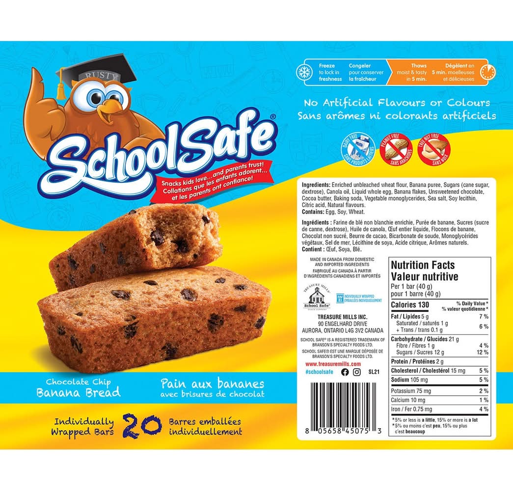 School Safe Banana Chocolate Chip Muffin Bars, 20 × 40 G