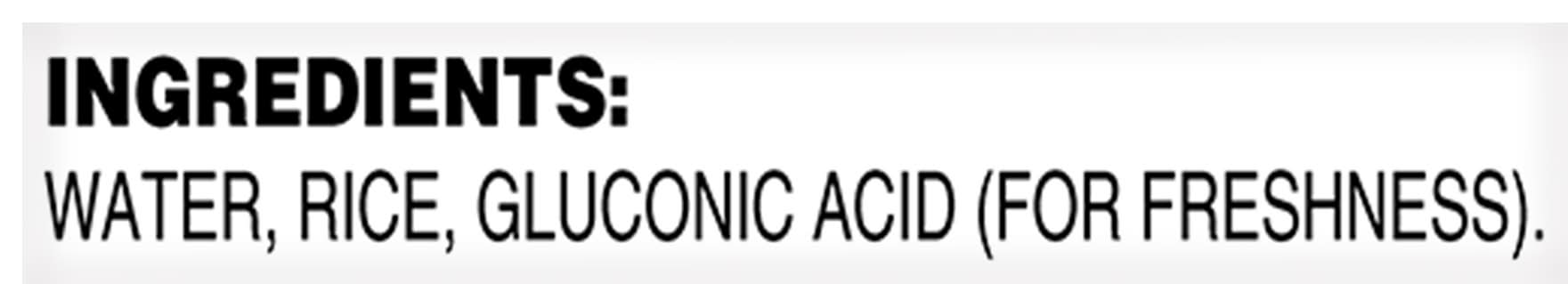 Ingredients: Water, Rice, Gluconic Acid (for Freshness)