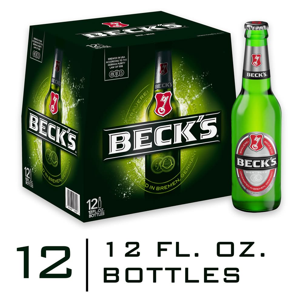 It is a classic European beer with a rich head and golden color. This complex, full bodied lager beer is sweet and soft-balanced with a clean, dry hop finish. Beck's pilsner beer has floral and fruit European Noble hop aromas Beck's tradition of quality was inspired by the almost thousand year brewing tradition of Bremen, Germany. This golden lager is perfect for sharing with friends during a backyard barbecue or with a steak dinner. The convenient pack of beer is easy to take anywhere. • Pack size: 12 • Alcohol by volume: 5% • Brauerei Beck & Co., St. Louis, MO