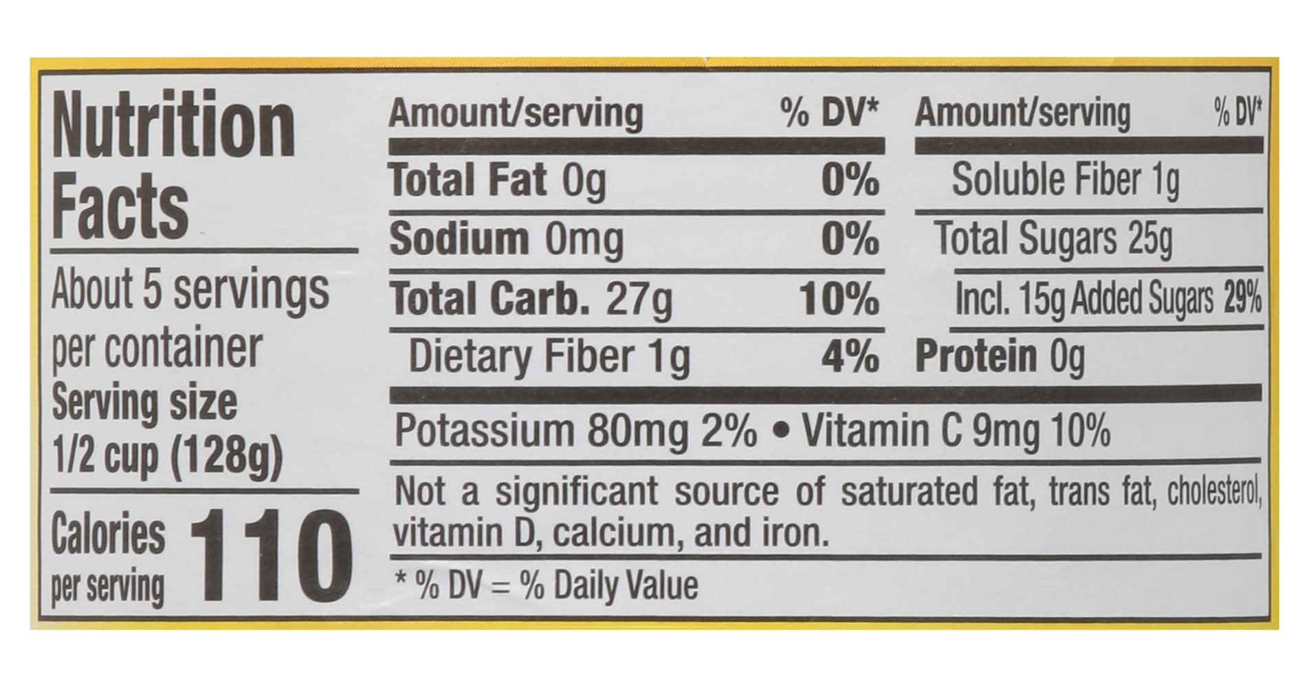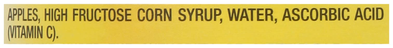 Ingredients: Apple, High Fructose Corn Syrup, Ascorbic Acid (Vitamin C) Contains: Corn