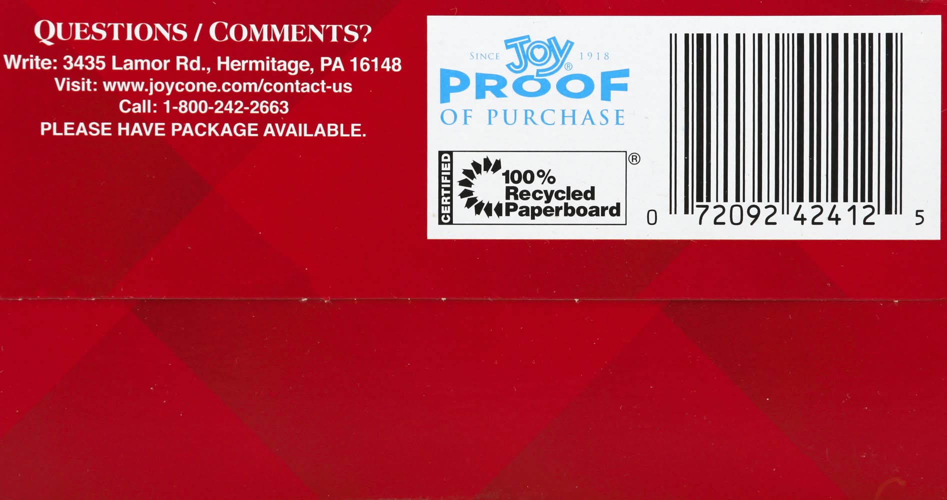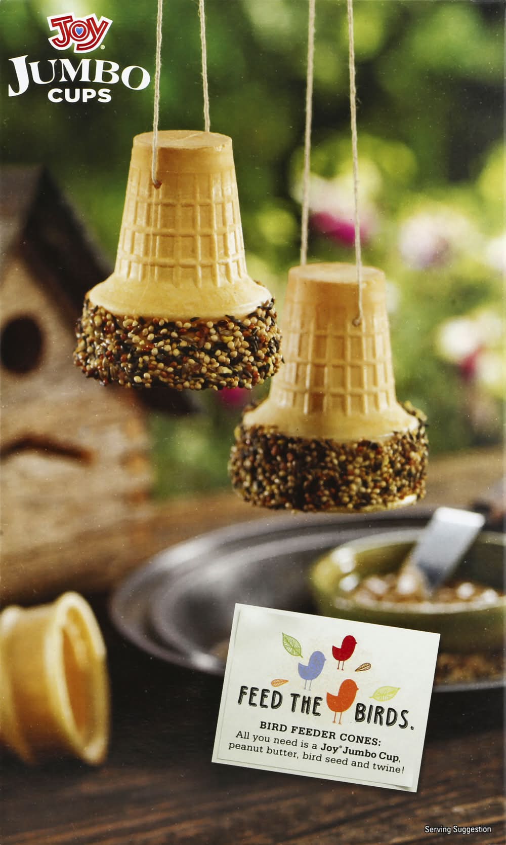 No peanuts or tree nuts are processed in our facility. Celebrating 100 years of baking excellence. Bring Joy home. Since 1918. Feed the Birds. Bird Feeder Cones: All you need is a Joy Jumbo Cup, peanut butter, bird seed and twine