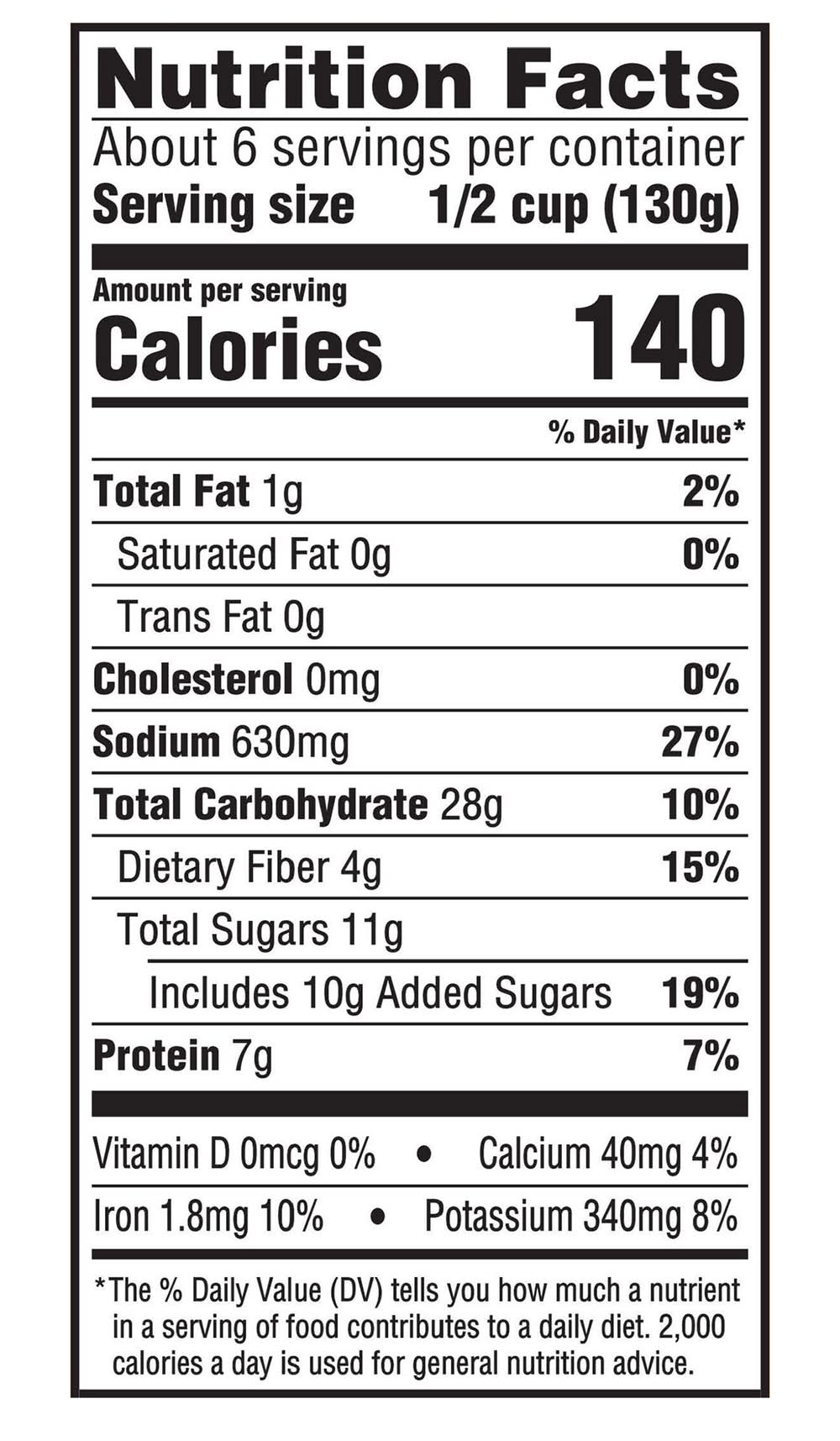 Ingredients: Prepared Navy Beans, Water, Sugar, White Mustard (Vinegar, Water, Mustard Seed, Salt, Natural Flavor). Contains 2% or Less of: Maple Syrup, Cured Bacon, Salt, Modified Corn Starch, Onion Powder, Caramel Color, Bacon Fat, Autolyzed Yeast Extract, Natural Flavor.