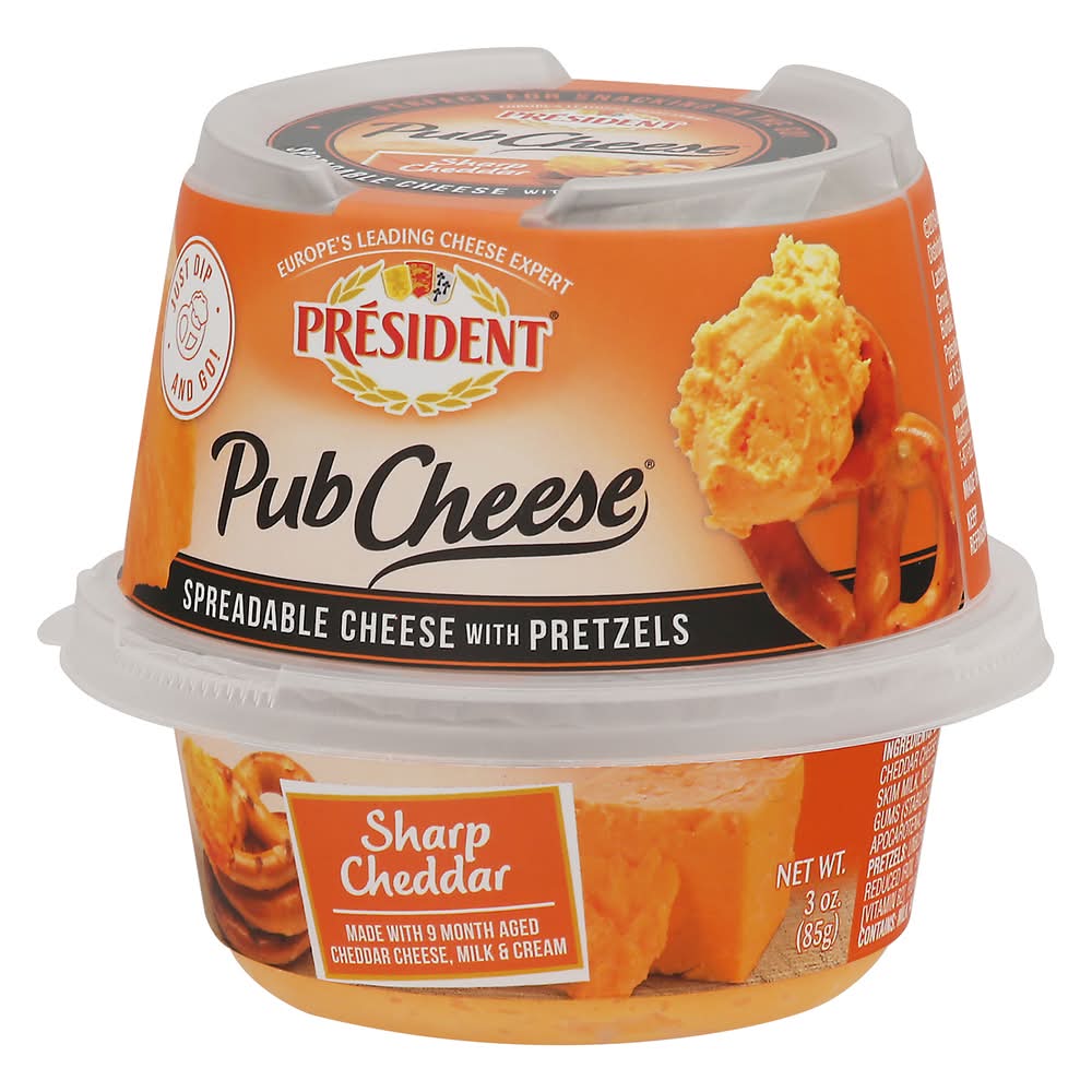 Président Pub Cheese Spreadable Sharp Cheddar With Pretzels (3 oz)