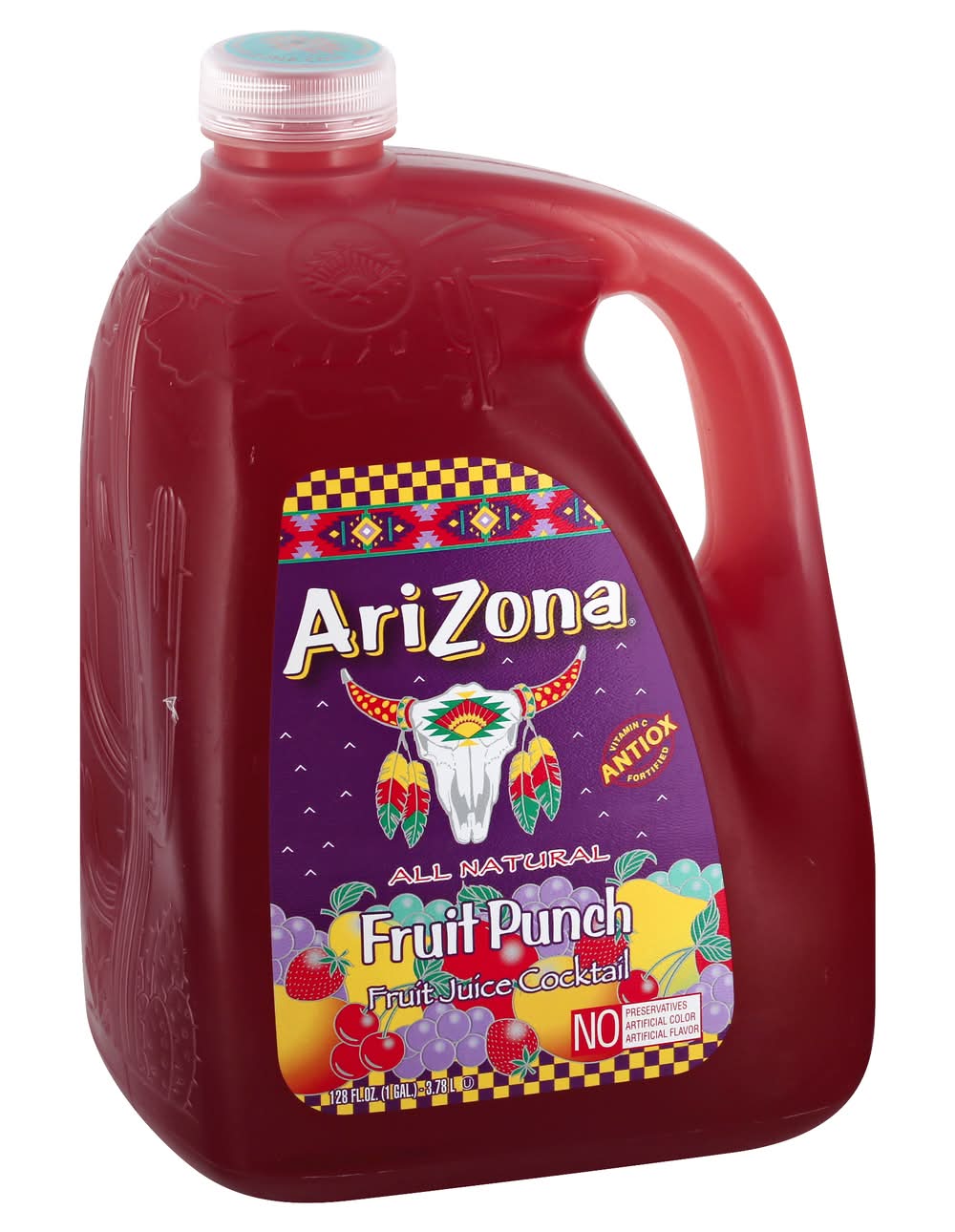 ARIZONA FRUIT PUNCH GALLON ARIZONA FRUIT PUNCH GALLON Bullet 2:ARIZONA FRUIT PUNCH GALLON Bullet 3:ARIZONA FRUIT PUNCH GALLON • Flavor: Fruit punch • Arizona Beverages Usa Llc, Woodbury,NY,11797 • Packaging: Reusable
