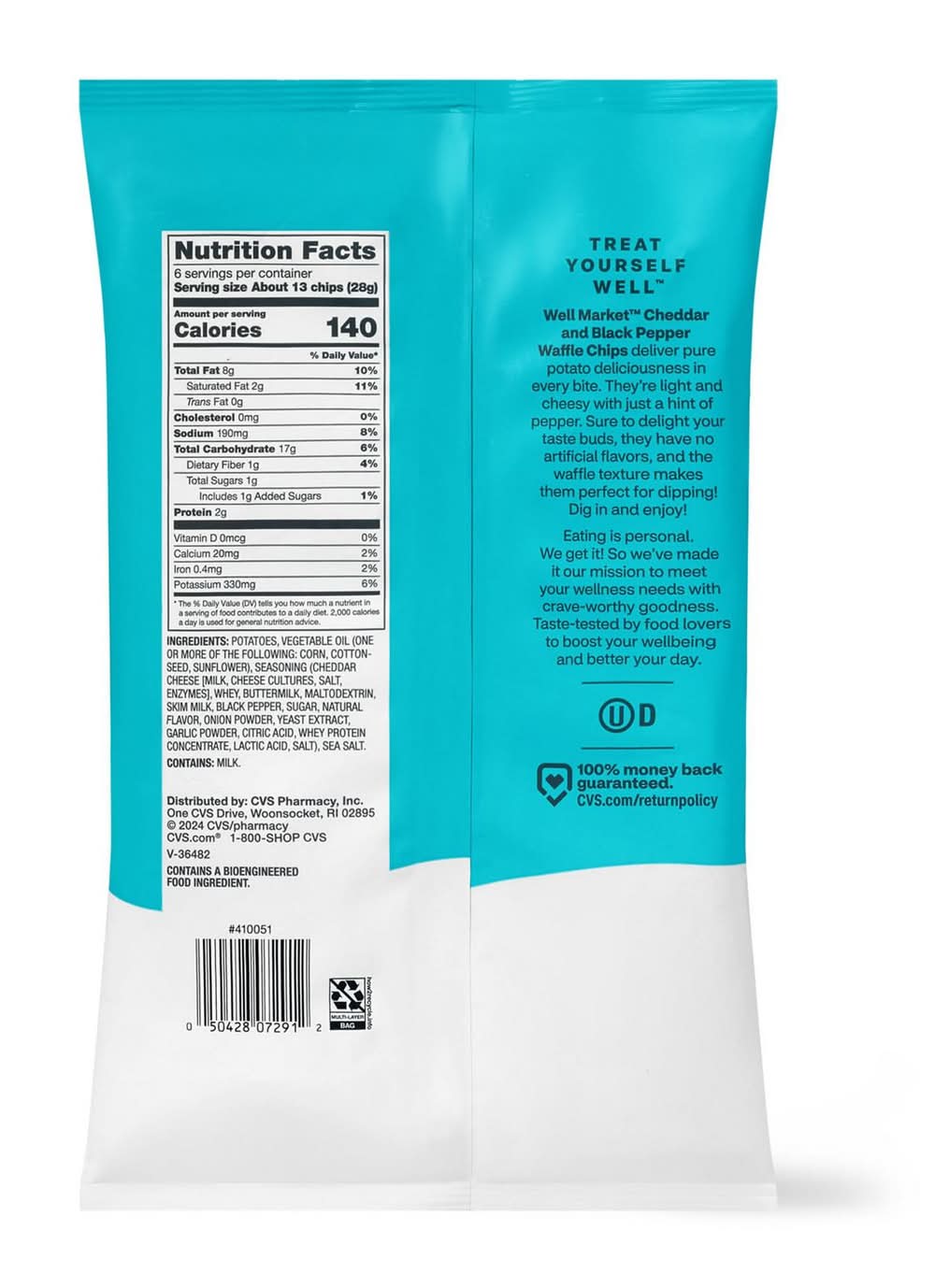 Gold Emblem Aged Cheddar & Black Pepper Kettle Cooked Waffle Chips are the totally addictive crispy, crunchy, peppery and cheesy answer to your snacking prayers. With Gold Emblem, you can turn any day into a celebration. We make sharing easy with food that's high quality and big on flavor: so bake a cake, pour a drink, or pass the snacks. Life is waiting. Dig in! We're Gold Emblem: Our standard is delicious.