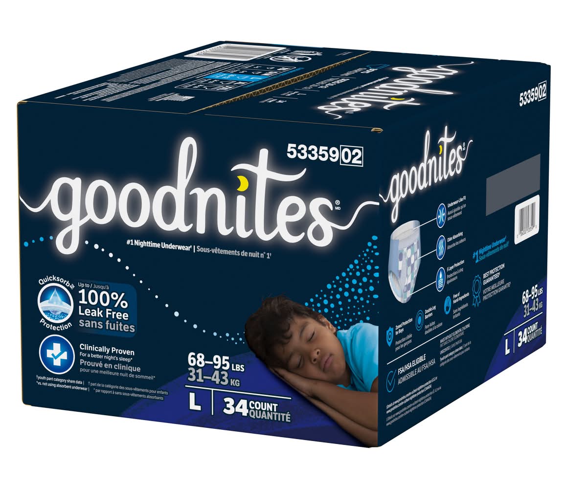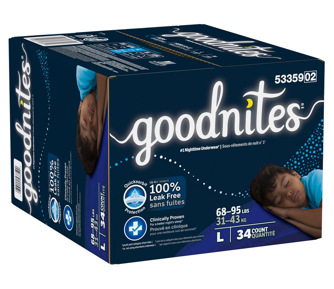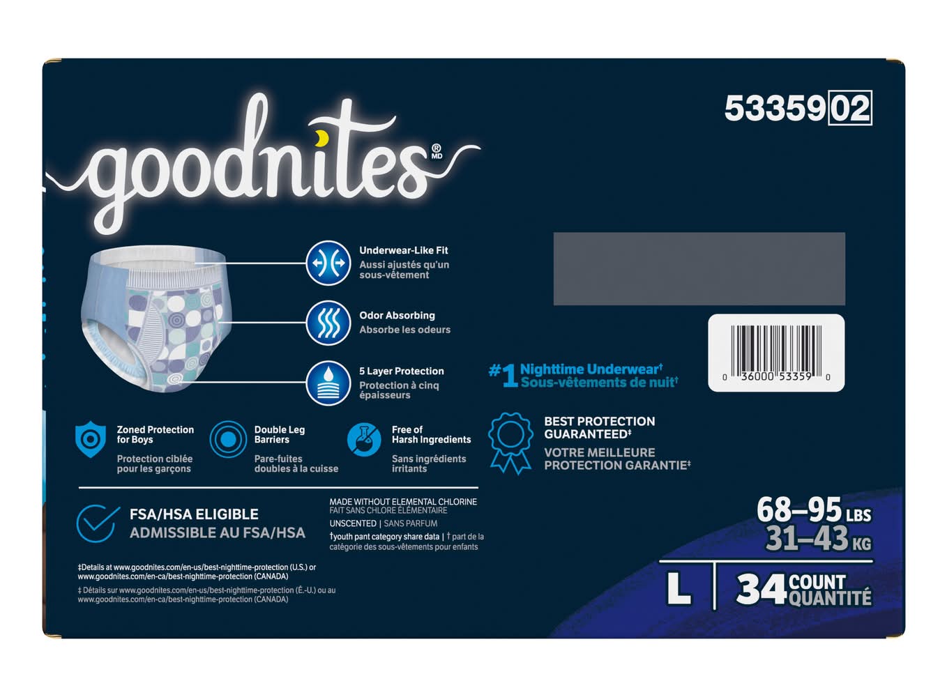 GoodNites Nighttime Boys Underwear, L (34 ct)