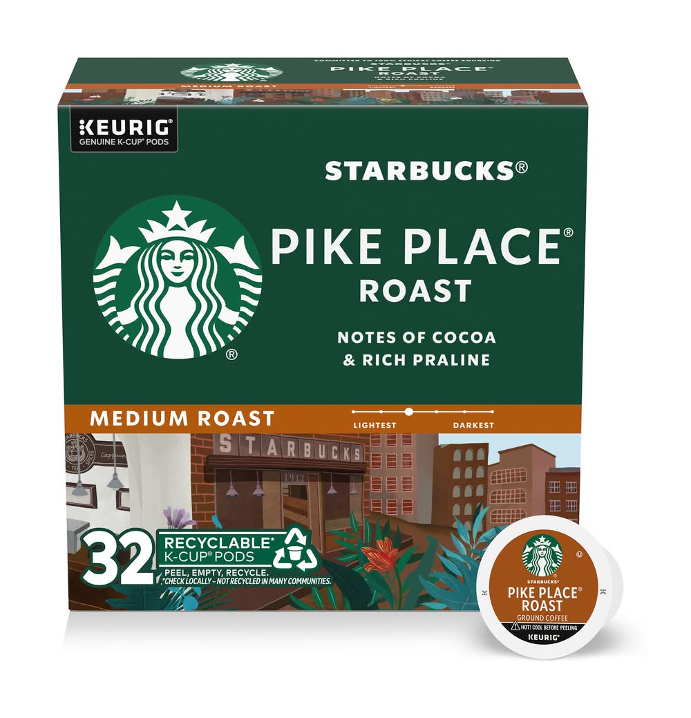 Starbucks Pike Place Medium Roast Ground Coffee K-Cup Pods (14.1 oz, 32 ct)