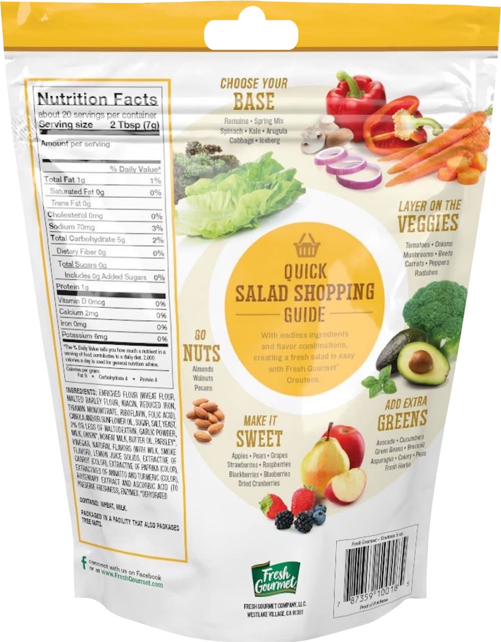 Croutons, Butter & Garlic • Flavor: Butter & garlic • Fresh Gourmet, Westlake Village, CA, 91361