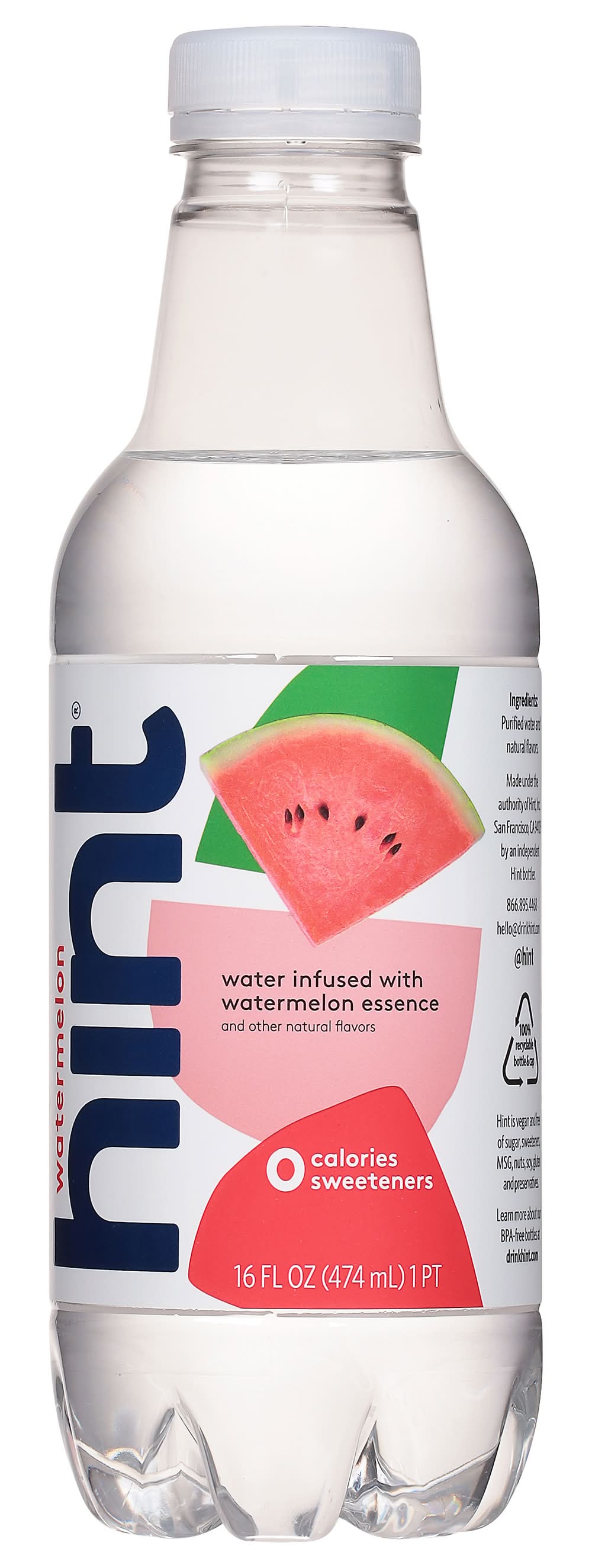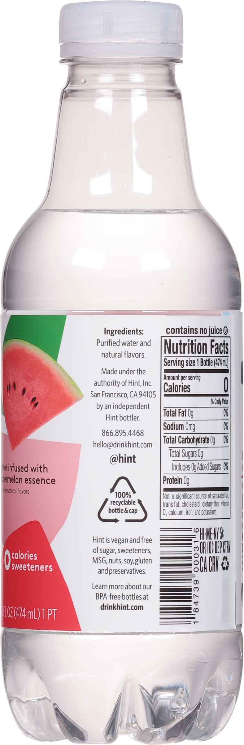 Water, Watermelon • Flavor: Watermelon • Hint, Inc., San Francisco,CA,94123 • Packaging: Reusable