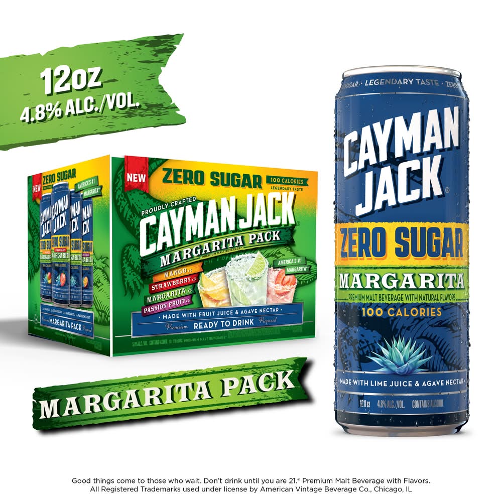 Cayman jack zero sugar margarita is a refreshing pre-made drink that delivers a unique sophisticated and hand-crafted experience. Yes, cayman jack has done the impossible: a zero sugar, authentic tasting margarita flavor this refreshing combination of zesty lime juice notes and sweet 100% blue agave nectar has that margarita taste you love all with zero sugar and 100 calories per 12oz serving, at 4.8% abv. And made with our own unmatched plant sourced sweetener recipe, there’s no compromise on flavor. Cayman jack zero sugar margarita offers authentic margarita taste the cayman jack zero sugar margarita tastes like it was hand-crafted right in front of you. Premium malt beverage with natural flavors • Flavor: Mango-strawberry-passion fruit • Pack size: 12 • Alcohol by volume: 4.8%