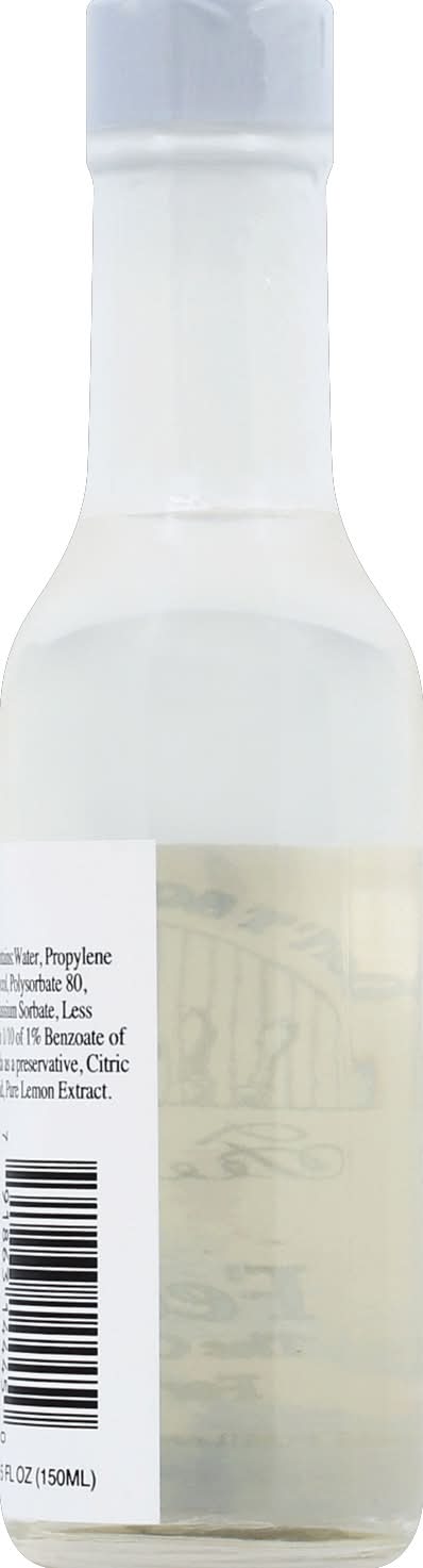 Ingredients: Contains: Water, Propylene Glycol, Polysorbate 80, Potassium Sorbate, Less than 1/10 of 1% Benzoate of Soda as a Preservative, Citric Acid, Pure Lemon Extract