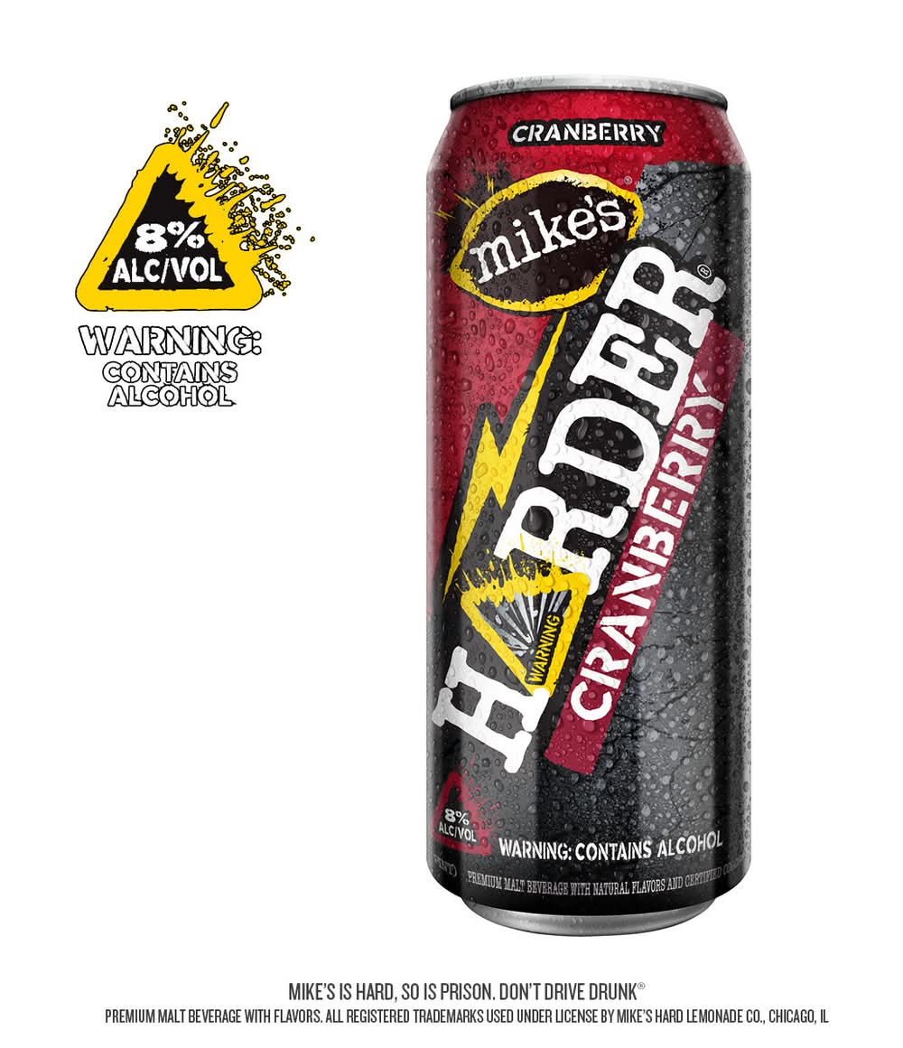 Mike’s HARDER Cranberry is a delicious blend of tart cranberries and refreshing lemonade. Beginning with an authentic cranberry red color, the aroma is that of fresh cranberries, not at all overpowering. The taste delivers a natural, tart cranberry with lemonade, but is more berry forward, while the finish is clean with a touch of sweetness. Mike’s is the original. Always has been. Always will be. Cheers! – 21+ only. MHL Co., CHI, IL. • Brand: Mike's harder • Flavor: Cranberry • Alcohol by volume: 8% • Packaging: Reusable